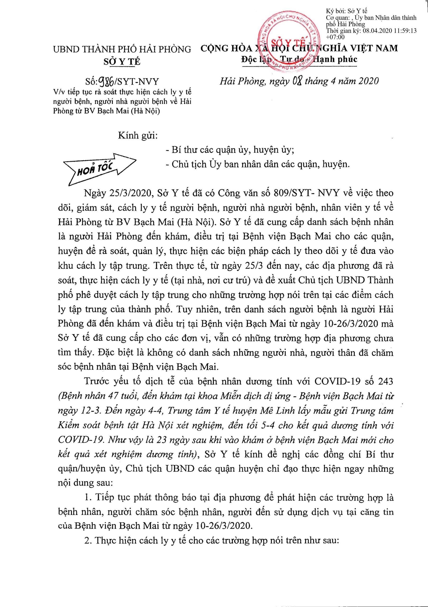 Tiếp tục thông báo tại địa phương để phát hiện các trường hợp là bệnh nhân, người nhà chăm sóc bệnh nhân, người đến sử dụng dịch vụ tại căng tin Bệnh viện Bạch Mai từ ngày 10-26/3/2020.