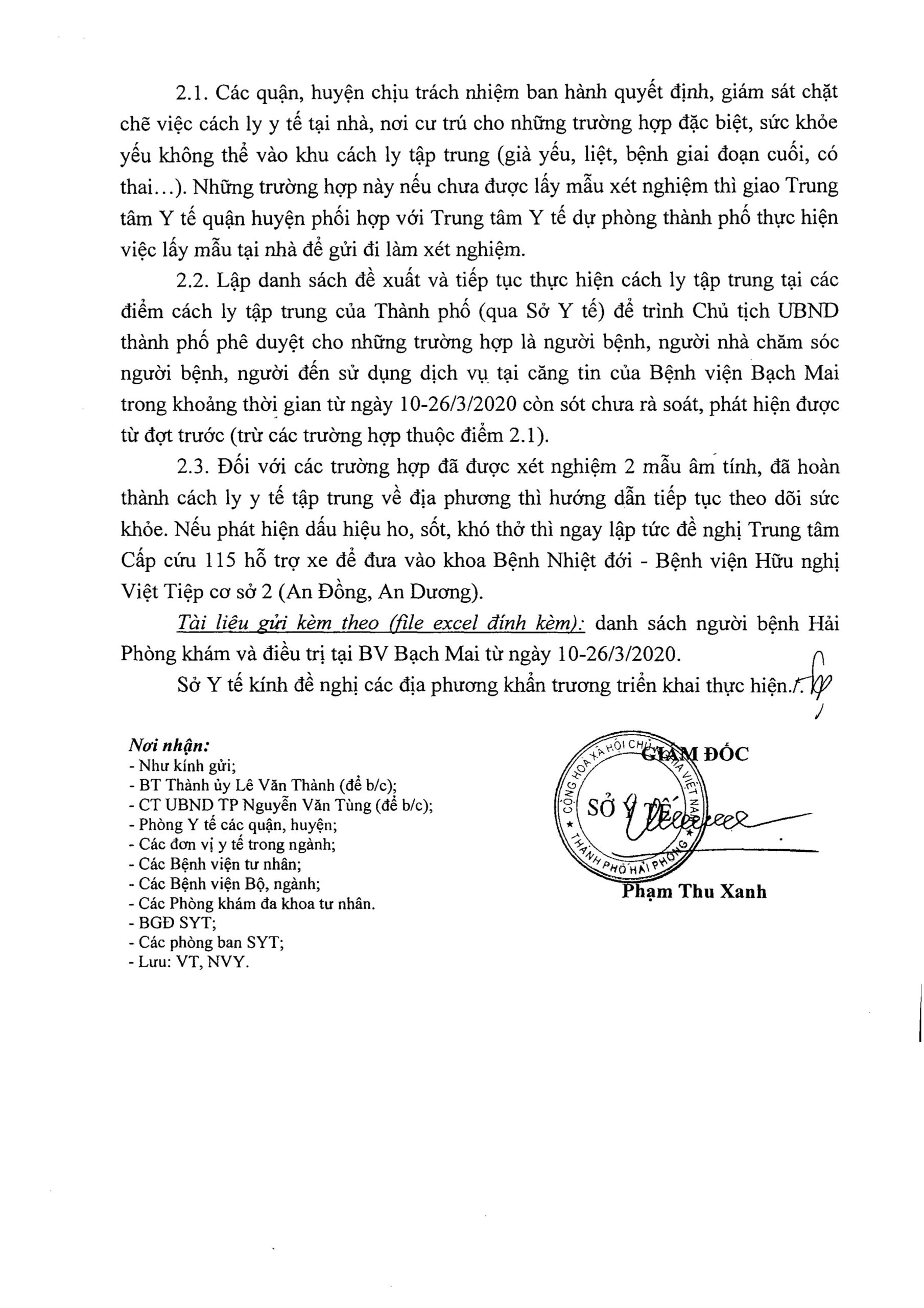 Như vậy, Sở Y tế kính đề nghị các đồng chí Bí thư quận/huyện ủy, Chủ tịch UBND các quận huyện chỉ đạo thực hiện ngay những nội dung sau: