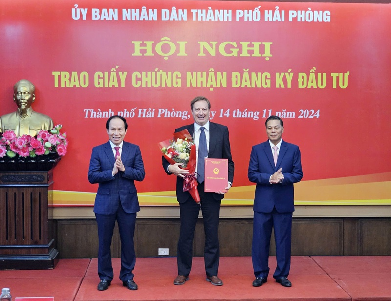 Tại hội nghị hôm nay, UBND TP. Hải Phòng đã trao giấy chứng nhận đăng ký đầu tư cho 12 dự án đầu tư mới và mở rộng tiêu biểu trong tháng 11/2024 trong KKT, KKT trên địa bàn Thành phố với tổng số vốn đầu tư thu hút được tăng thêm 1,8 tỷ USD, dự kiến nhu cầu lao động trong các năm tới vào khoảng 17.000 người.