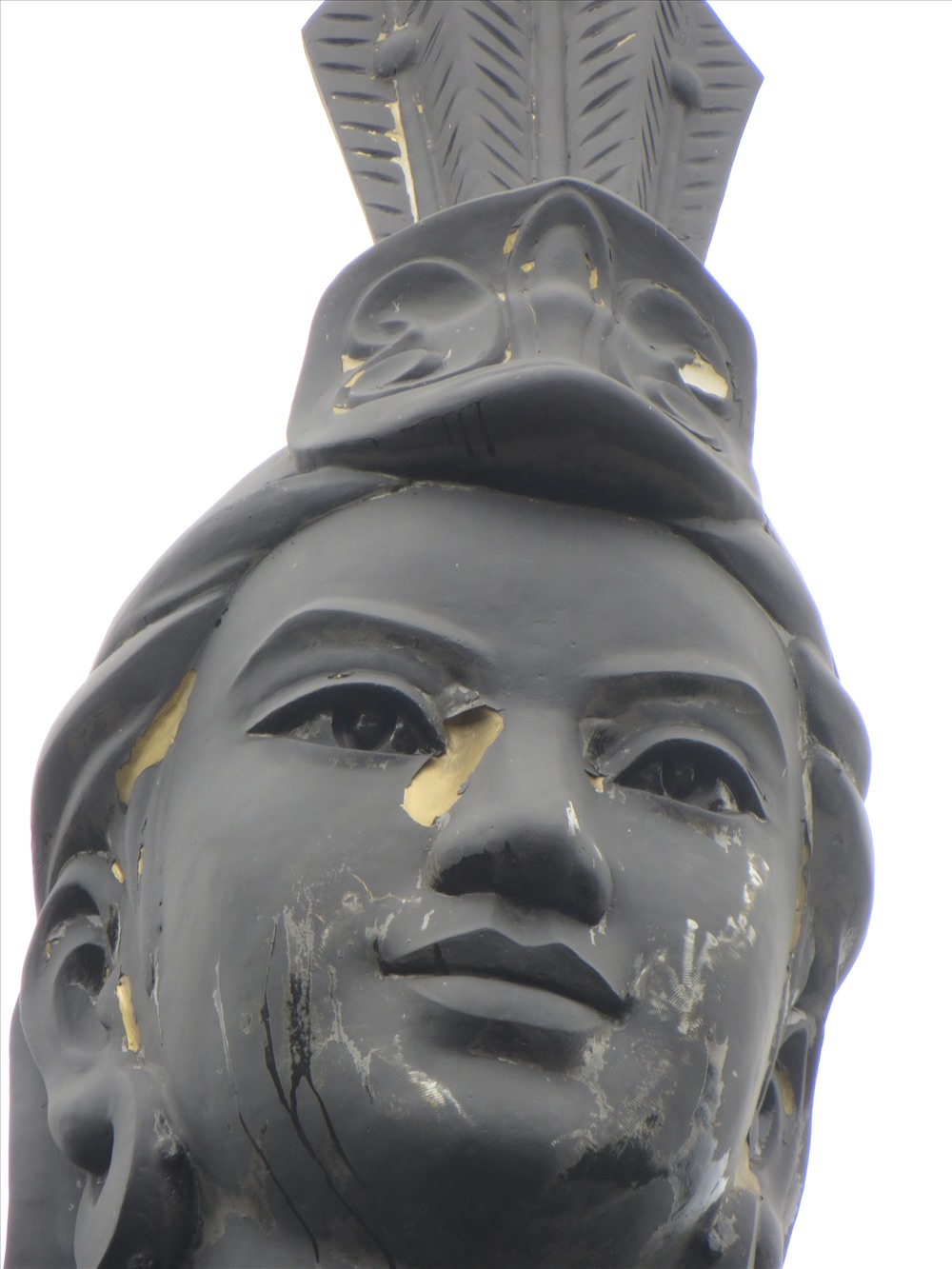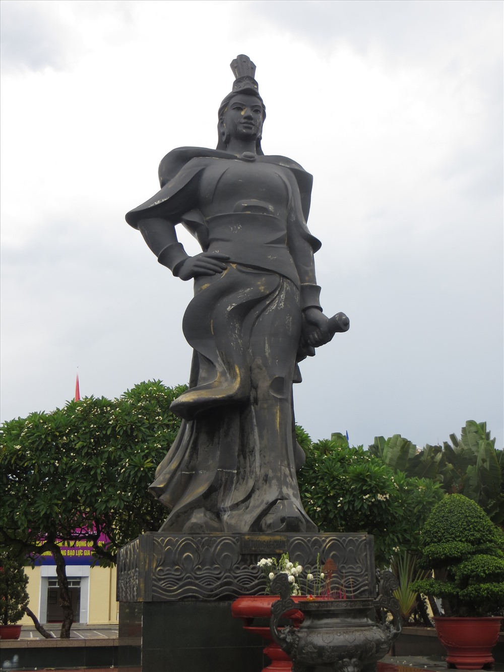 Những vết sơn bong ra trên khuôn mặt, phần đế, cũng như toàn thân tượng đã ảnh hưởng tới sự uy nghi của nữ tướng Lê Chân, người có công khai khẩn lập nên vùng đất Hải Phòng ngày nay.