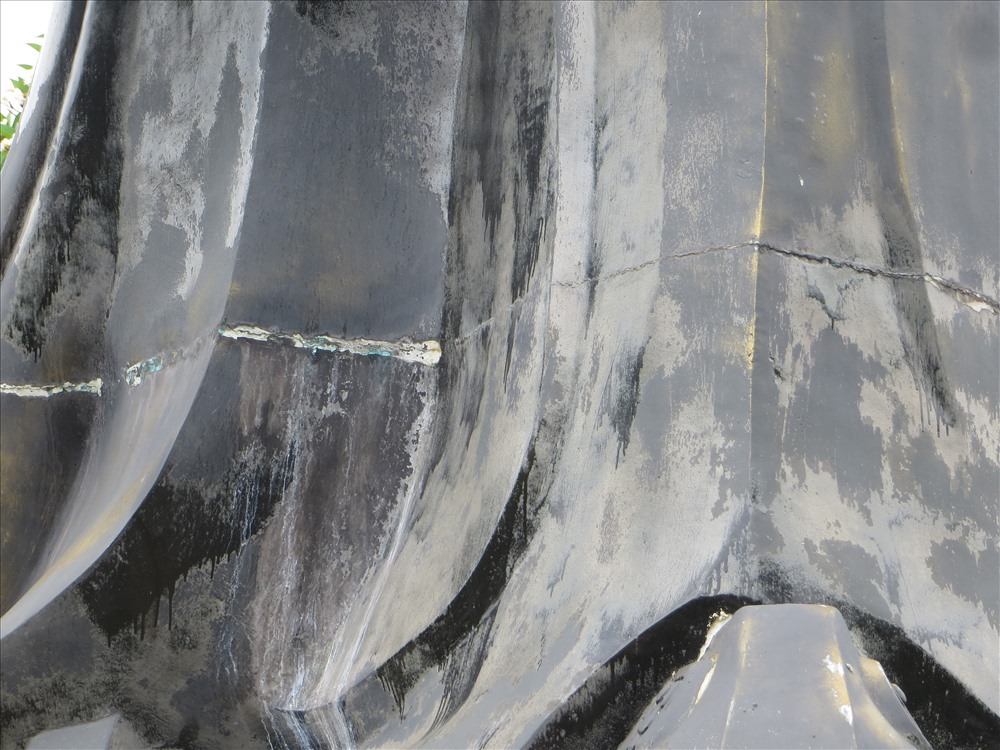 Cũng theo bà Hạnh, ngoài việc bong tróc lớp sơn bề ngoài, ở thân tượng cũng xuất hiện vết nứt, bị rỉ sét, rất cần phải được trùng tu lại.