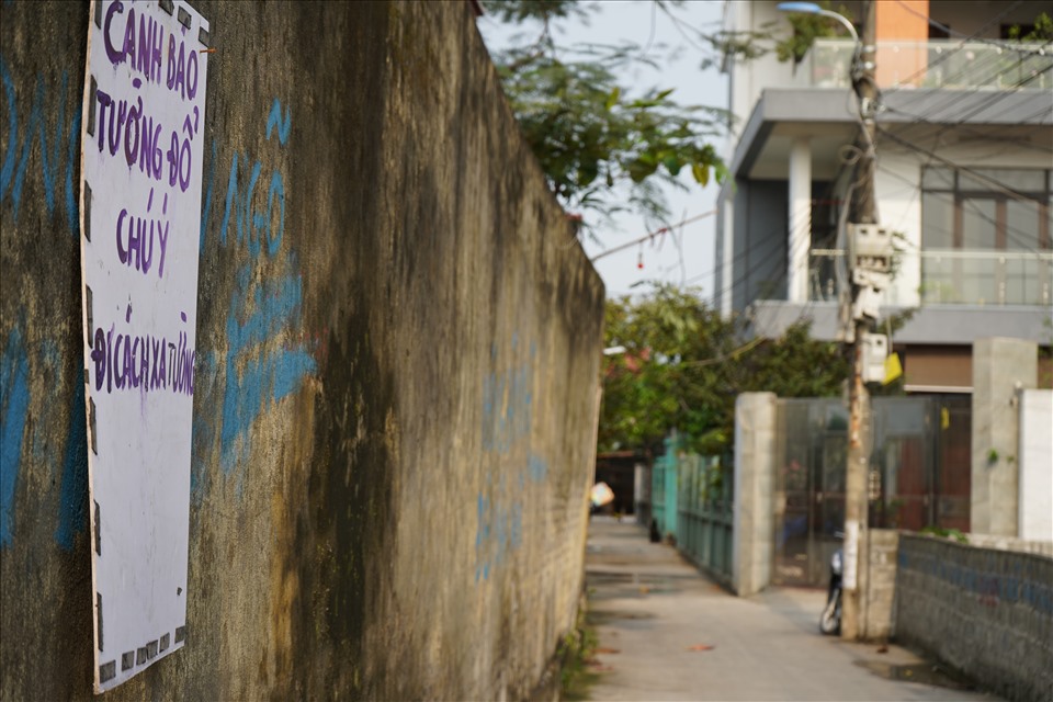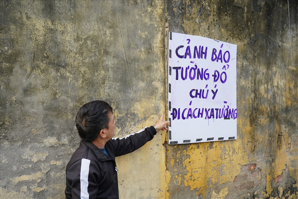 Cụ thể, từ giữa tháng 2.2021, người dân phát hiện bức tường có dấu hiệu nứt và ngày càng nghiêng về phía ngõ dân sinh. Sau đó, người dân có phản ánh với nhà trường, tổ dân phố và nhà trường cũng đã dán biển, lắp đèn đỏ cảnh báo nguy hiểm. “Ngách 20 hằng ngày có rất nhiều người qua, lại, trong đó nhiều người già, trẻ nhỏ. Mặc dù nhà trường có cảnh báo người dân đi cách xa tường, tuy nhiên tường cao 3,5 mét, ngõ chỉ rộng 3,2 mét, nếu tường đổ thì nguy cơ mất an toàn là rất cao“, ông V.V.T (60 tuổi, ngách 20/87) cho biết.