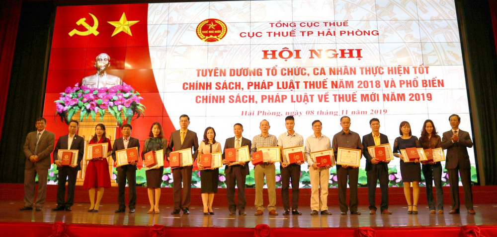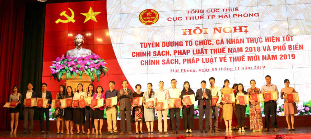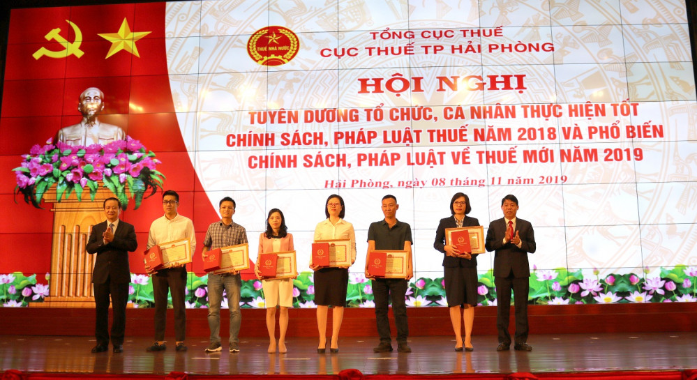 Tại Hội nghị, 8 tập thể được trao Bằng khen của Bộ Tài chính; 16 tập thể và cá nhân được trao Giấy khen của Tổng cục Thuế; 87 tập thể và cá nhân được trao Giấy khen của Cục Thuế thành phố Hải Phòng.