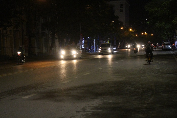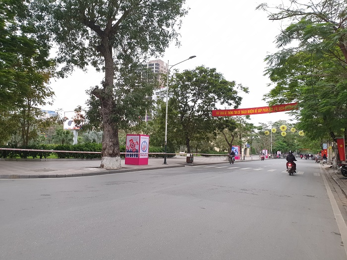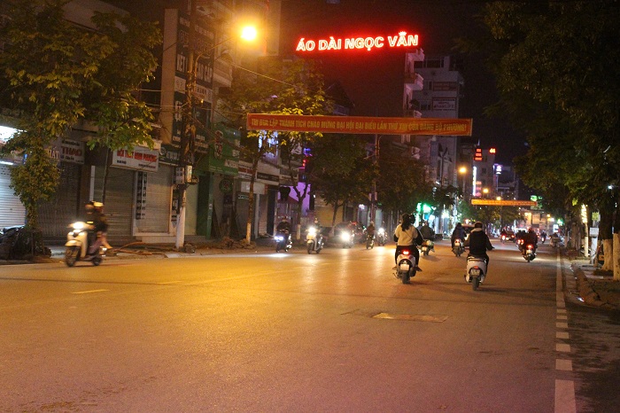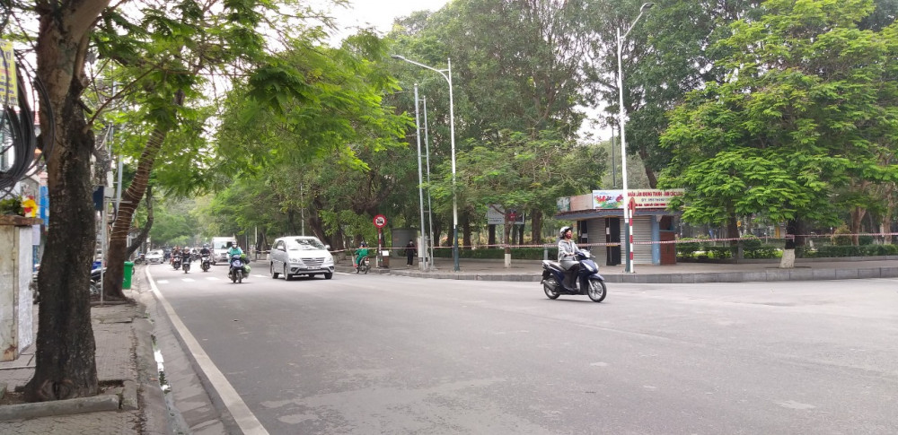 Đường Nguyễn Đức Cảnh trước khi thực hiện biện pháp cách ly xã hội còn đông người và phương tiện, giờ vắng người qua lại.