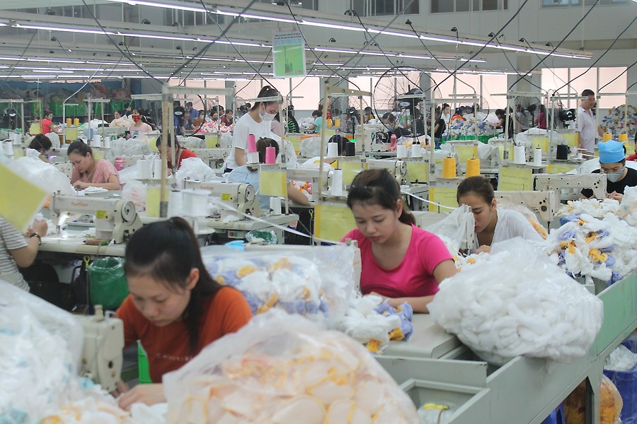 Trong ảnh: Công nhân Công ty TNHH May Minh Thành trong ca sản xuất.
