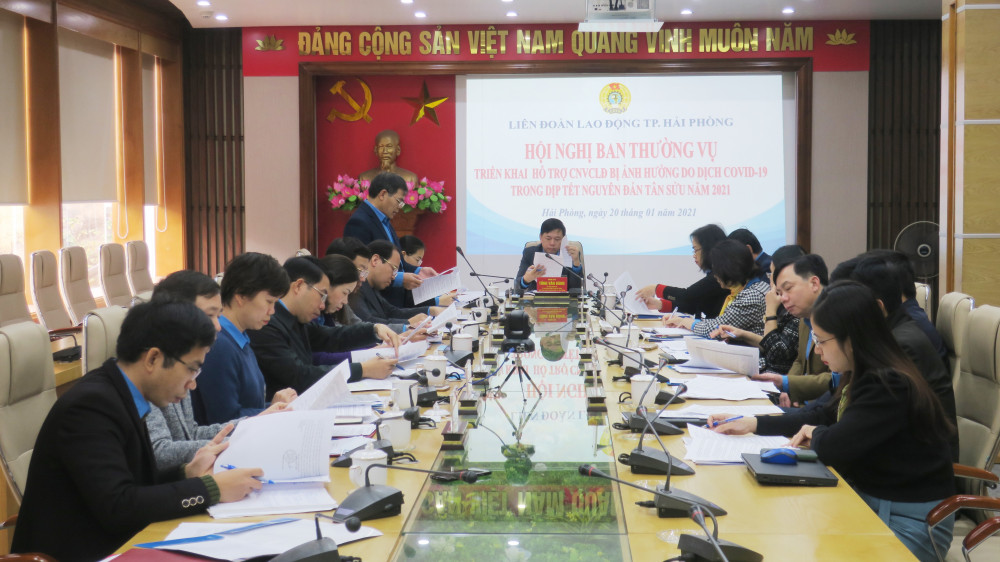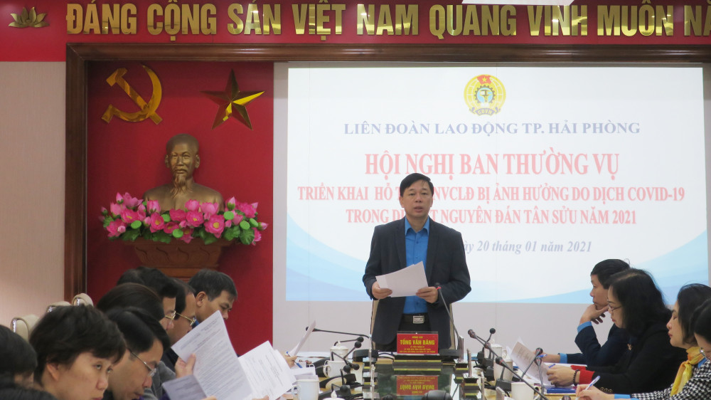 Sáng 20/1, Ban thường vụ Liên đoàn Lao động thành phố Hải Phòng tổ chức Hội nghị triển khai công tác hỗ trợ công nhân viên chức lao động bị ảnh hưởng bởi dịch COVID-19 trong dịp Tết nguyên đán Tân Sửu 2021.