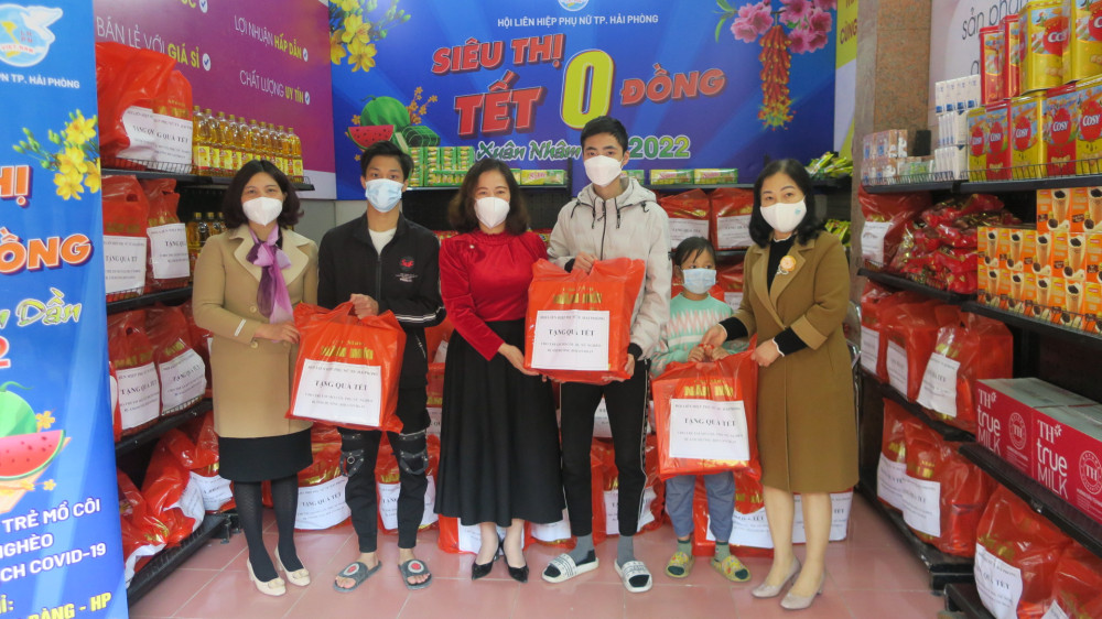 Chiều 18/01, Hội Liên hiệp Phụ nữ thành phố tổ chức trao quà cho các cháu trẻ em mồ côi, phụ nữ có hoàn cảnh khó khăn trên địa bàn thành phố tại “Siêu thị Tết 0 đồng” – 23 Minh Khai, Hồng Bàng, Hải Phòng.