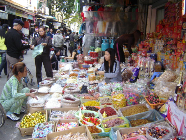 Theo tìm hiểu của chúng tôi, không chỉ ở những siêu thị lớn, tại các chợ tự do, có một điều đáng ghi nhận là sự vươn lên mạnh mẽ của các mặt hàng thiết yếu phục vụ cho ngày Tết như: bánh kẹo, ô mai, hạt dưa, hạt bí, mứt các loại… mang nguồn gốc xuất xứ Việt Nam. Những mặt hàng này không chỉ vô cùng phong phú về chủng loại, hấp dẫn về hình thức mà chất lượng cũng bảo đảm và giá thành hợp lý.
