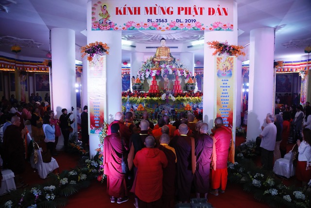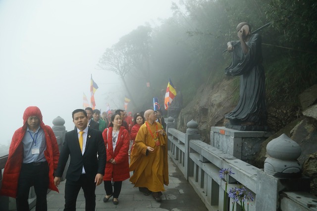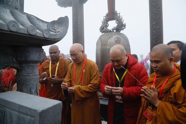 Sau các hoạt động trong khuôn khổ Đại lễ Phật đản Liên hợp quốc Vesak 2019 diễn ra tại Hà Nam, sáng 15/5, hơn 300 đại biểu gồm các tăng vương, tăng thống và Phật tử từ nhiều nước trên thế giới đã có chuyến hành hương chiêm bái và dự Đại lễ cầu Quốc thái dân an đầy ý nghĩa trên đỉnh thiêng Fansipan.