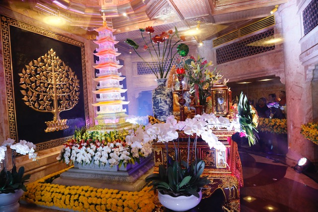 Các đại biểu cùng du khách tham dự lễ cầu an cũng đã không bỏ lỡ cơ hội được chiêm bái xá lợi Phật linh thiêng được đặt trang trọng trong tháp lưu ly 7 tầng, tại một không gian riêng biệt trong lòng Đại tượng Phật. Đây là ngọc xá lợi Phật được các cao tăng Myanmar trao tặng tổ đình Vĩnh Nghiêm và được tổ đình cúng dường Đại tượng Phật tại Fansipan, nguyện cầu quốc thái dân an.