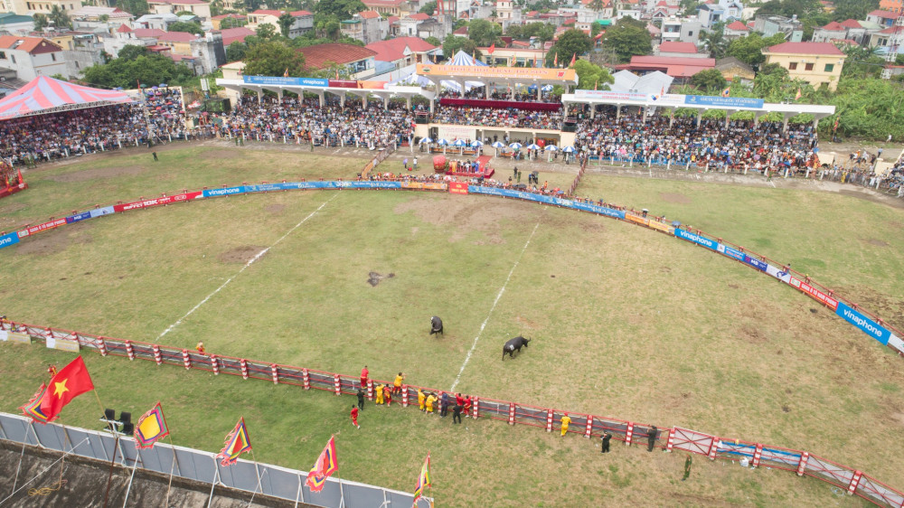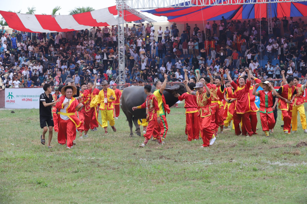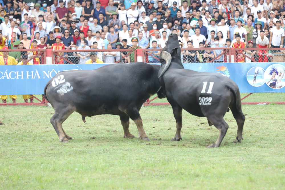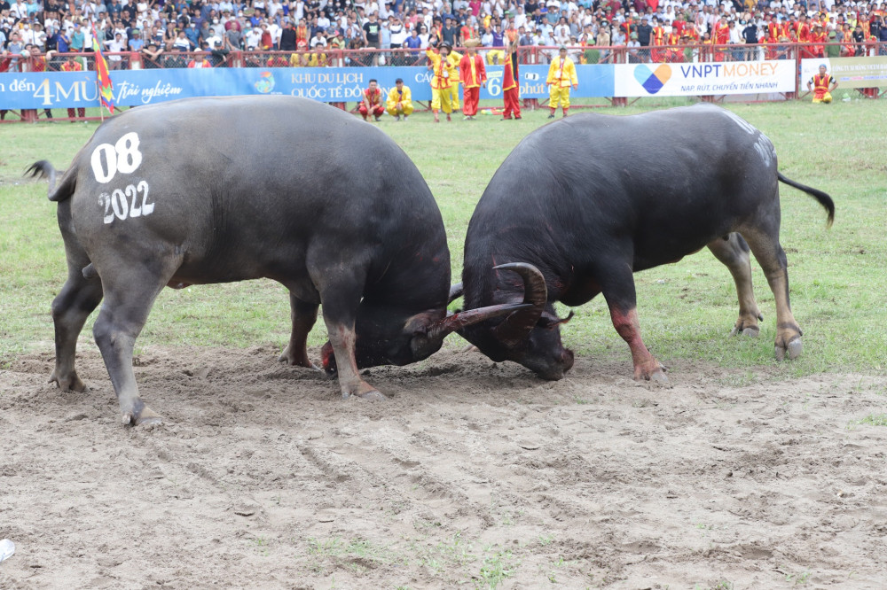 Ngay sau phần nghi lễ, 16 ông trâu bước vào vòng tranh tài gây cấn, kết quả trâu số 08 của ông Nguyễn Đức Tiến, phường Bàng La giành giải Nhất; trâu số 02 của ông Phạm Văn Hiệu, phường Hợp Đức giành giải Nhì; trâu số 07 của ông Hoàng Gia Văn, phường Bàng La và trâu số 05 của ông Nguyễn Văn Nam, phường Vạn Hương đạt cùng giành giải Ba. Ban Tổ chức cũng trao giải cặp trâu chọi hay nhất cho trâu số 01 và trâu số 02. Giải trâu có miếng đánh hay nhất thuộc về trâu số 12.