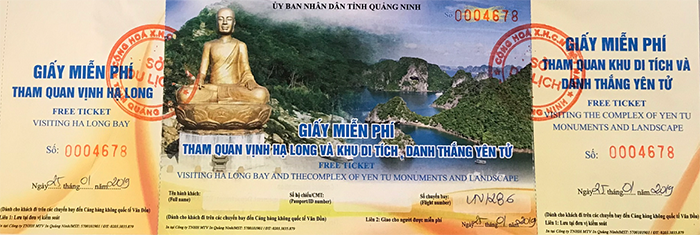 Theo đó, từ ngày 01/01/2019 đến hết ngày 31/12/2021, tất cả hành khách trên các chuyến bay đi và đến qua Cảng hàng không Quốc tế Vân Đồn được miễn phí tham quan các điểm đến nổi tiếng tại Quảng Ninh như Khu di tích và danh thắng Yên Tử, Di sản thiên nhiên thế giới Vịnh Hạ Long, Vịnh Bái Tử Long. Mỗi lần bay đến Cảng hàng không Quốc tế Vân Đồn, hành khách được miễn phí tham quan một lần. Thời gian miễn phí cho từng hành khách trong vòng 30 ngày kể từ ngày đi trên các chuyến bay đến Cảng hàng không Quốc tế Vân Đồn.