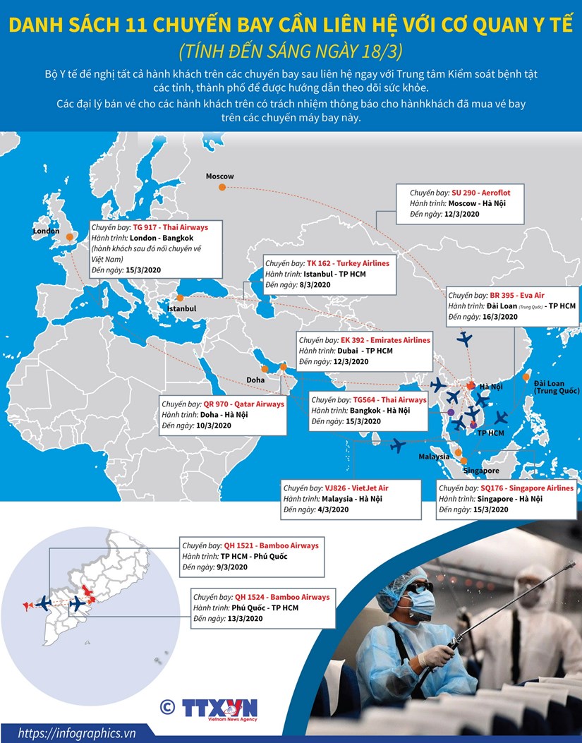 Thông báo khẩn về 11 chuyến bay có người mắc COVID-19 Bộ Y tế đề nghị tất cả hành khách trên các chuyến bay sau liên hệ ngay với Trung tâm Kiểm soát bệnh tật các tỉnh, thành phố để được hướng dẫn theo dõi sức khỏe.