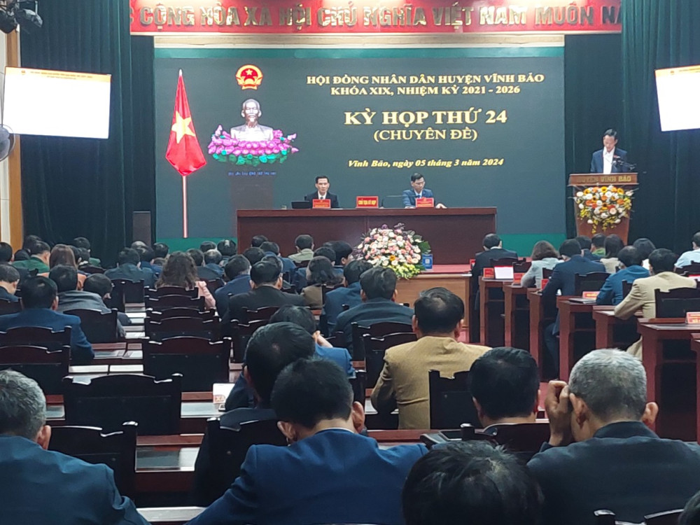 Ngày 5-3, HĐND huyện Vĩnh Bảo khóa 19, nhiệm kỳ 2021-2026 tổ chức kỳ họp thứ 24 (chuyên đề) quyết định thông qua Điều chỉnh quy hoạch sử dụng đất thời kỳ 2021-2030 huyện Vĩnh Bảo, thành phố Hải Phòng.