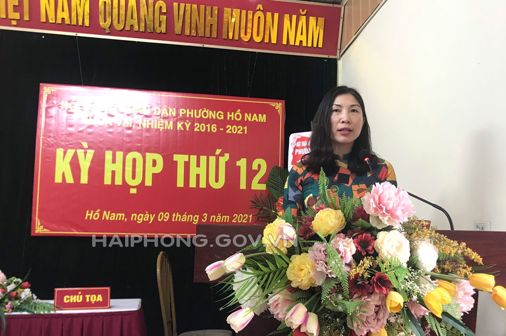 Phát biểu tại Kỳ họp, thay mặt Ban Chấp hành Đảng bộ phường, đồng chí Hoàng Thị Yến, Bí thư Đảng ủy phường Hồ Nam biểu dương và ghi nhận những cố gắng và những kết quả mà HĐND phường đã đạt được trong nhiệm kỳ 2016-2021. Đồng chí nêu rõ, năm 2021, năm đầu thực hiện Nghị quyết Đại hội XIII của Đảng; tiến hành bầu cử đại biểu Quốc hội khóa XV và đại biểu HĐND các cấp nhiệm kỳ 2021-2026, phường đang có những thuận lợi rất cơ bản từ những kết quả đã đạt được trong nhiệm kỳ 2016-2021, song phía trước công việc còn rất nặng nề, khó khăn, đòi hỏi cấp ủy, chính quyền, cả hệ thống chính trị cần phải quyết tâm thực hiện hiệu quả.