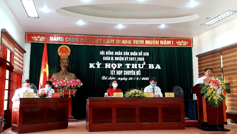 Sáng 10/9, HĐND quận Đồ Sơn khóa VI, nhiệm kỳ 2021-2026 tổ chức kỳ họp thứ 3, kỳ họp chuyên đề nhằm bàn, thống nhất, quyết định chủ trương đầu tư đối với các dự án đầu tư năm 2021; quyết định chủ trương đầu tư đối với các dự án đầu tư năm 2022. Đồng chí Bùi Thị Hồng Vân, Ủy viên Thành ủy, Bí thư Quận ủy, Chủ tịch HĐND quận chủ trì kỳ họp.