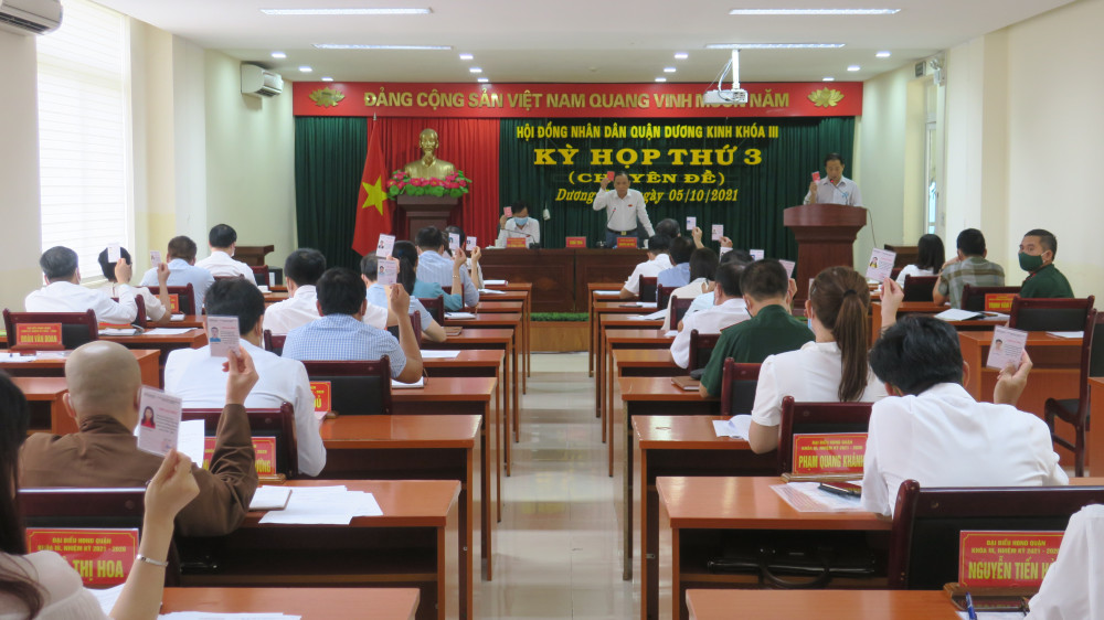 Chiều 5/10, HĐND quận Dương Kinh khóa III tổ chức kỳ họp thứ 3, nhiệm kỳ 2021-2026. Đây là kỳ họp chuyên đề xem xét, quyết định nhiều vấn đề quan trọng theo luật định.
