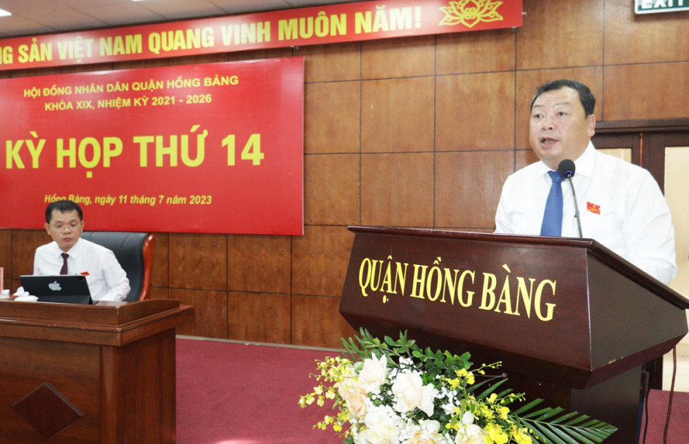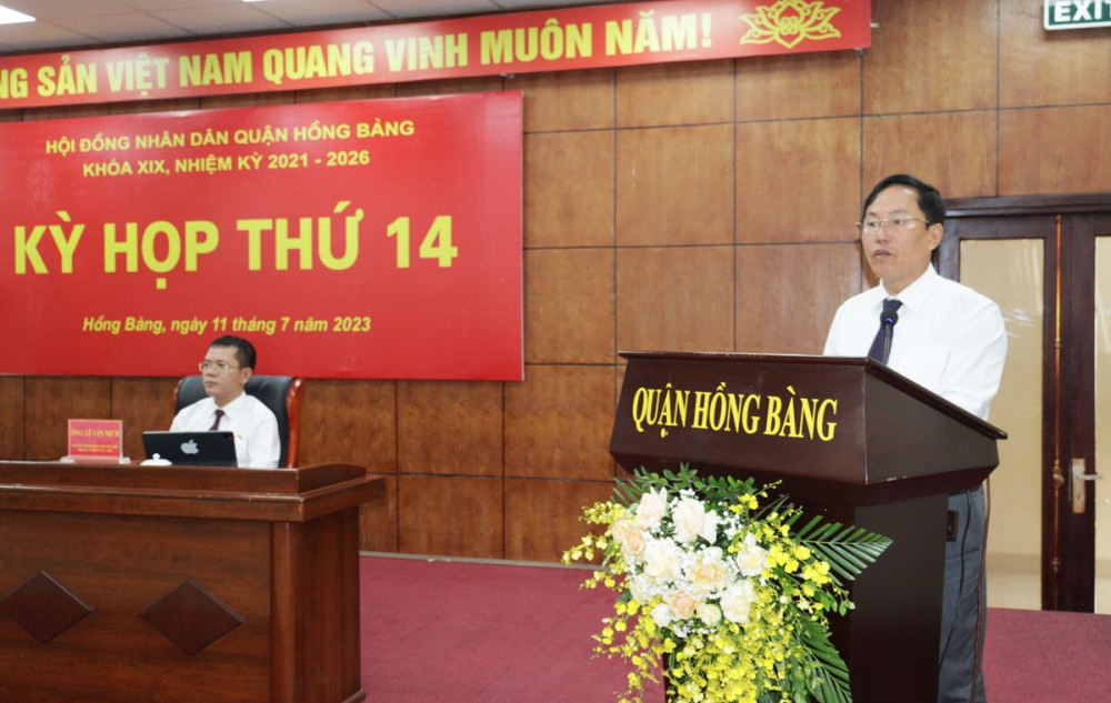Sáng 11/7, HĐND quận Hồng Bàng khóa XIX, nhiệm kỳ 2021-2026 tổ chức khai mạc Kỳ họp thứ 14, kỳ họp thường lệ giữa năm 2023. Dự Kỳ họp có đồng chí Lê Ngọc Trữ, Ủy viên Ban Thường vụ Thành ủy, Bí thư Quận ủy Hồng Bàng.