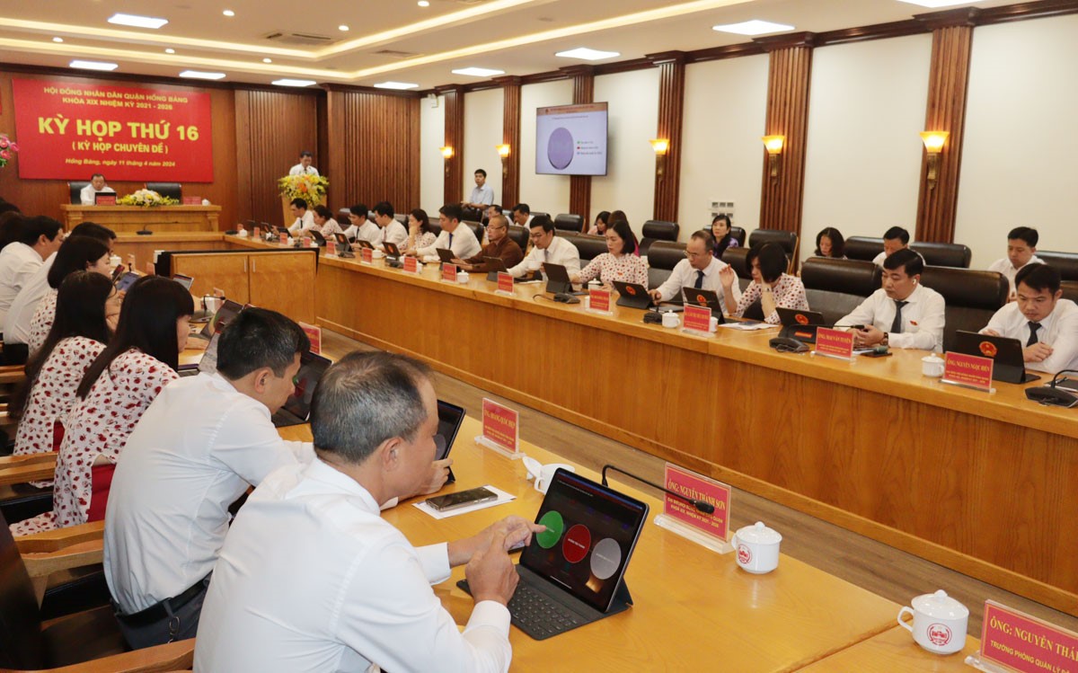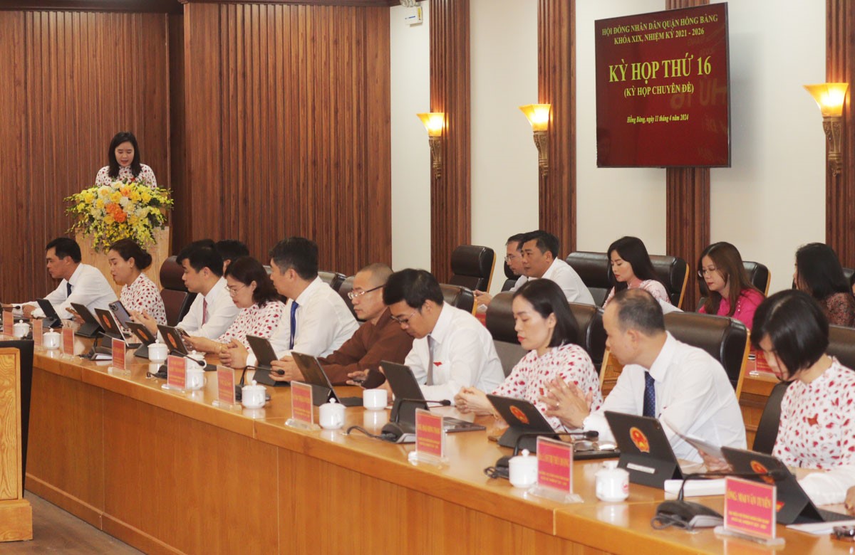 Tại Kỳ họp, các đại biểu HĐND quận đã biểu quyết thông qua Nghị quyết về việc tán thành chủ trương điều chỉnh địa giới hành chính huyện An Dương để mở rộng quận Hồng Bàng và sắp xếp, thành lập các phường thuộc quận Hồng Bàng.