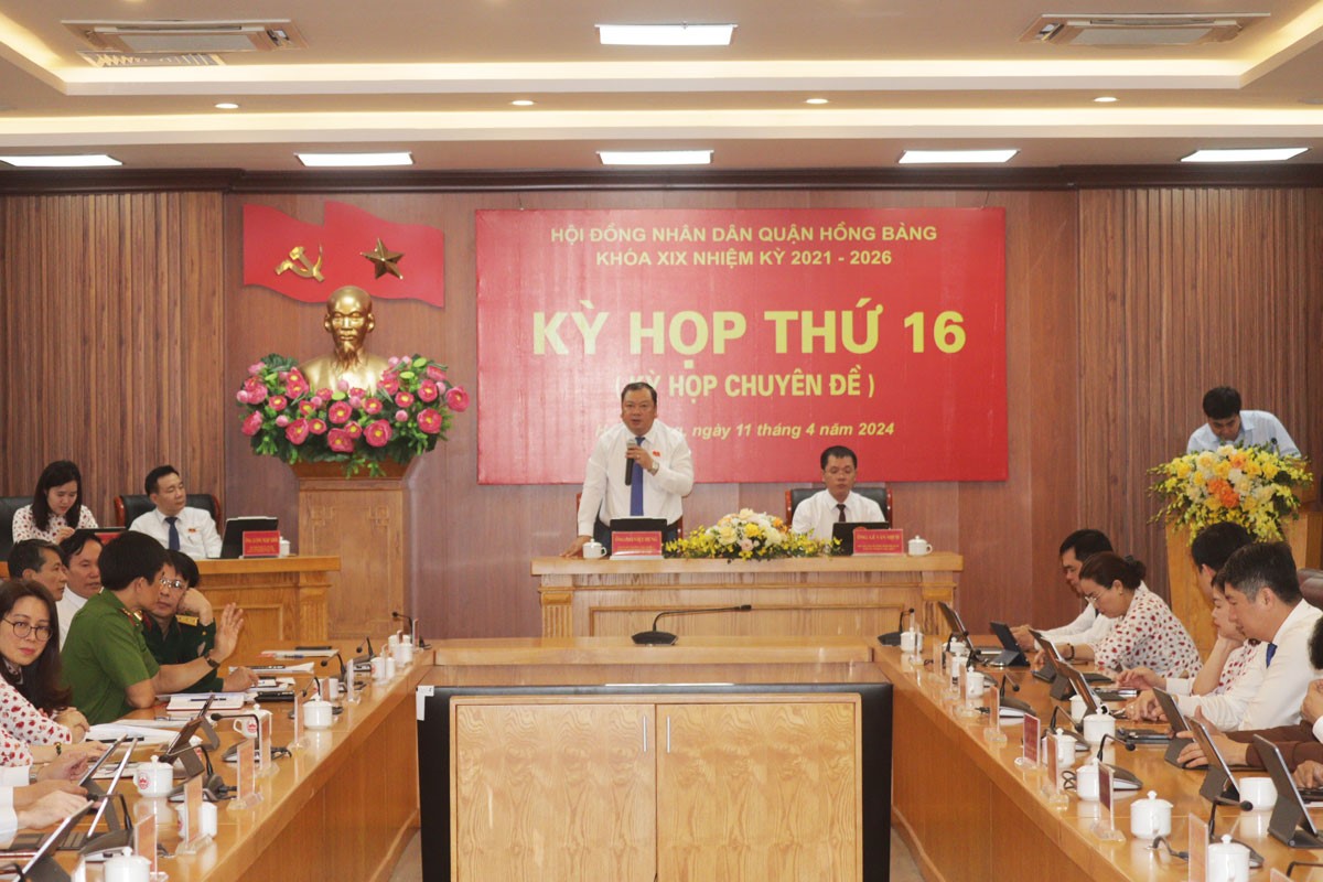 Phát biểu chỉ đạo tại Kỳ họp, đồng chí Lê Ngọc Trữ, Bí thư Quận ủy nêu rõ, một trong những nội dung trọng tâm của Kỳ họp lần này là thông qua Đề án điều chỉnh địa giới hành chính huyện An Dương để mở rộng quận Hồng Bàng và sắp xếp thành lập các phường thuộc quận Hồng Bàng nhằm cụ thể hoá việc triển khai thực hiện Nghị quyết số 18 của Ban Chấp hành Trung ương về sắp xếp tổ chức, tinh gọn bộ máy, tinh giản biên chế của hệ thống chính trị; Kết luận số 48 ngày 30/01/2023 của Bộ Chính trị và Nghị quyết số 35 của Ủy ban Thường vụ Quốc hội về việc sắp xếp đơn vị hành chính cấp huyện, cấp xã giai đoạn 2023-2030. Cùng với đó, HĐND quận cũng xem xét, thảo luận, quyết định chủ trương đầu tư một số công trình, dự án đầu tư công năm 2024, đáp ứng yêu cầu triển khai nhanh chóng, kịp thời các nhiệm vụ chính trị, thực hiện kế hoạch phát triển kinh tế-xã hội và Chủ đề năm của quận về “Tăng cường kỷ cương thu chi ngân sách-Đẩy mạnh Chuyển đổi số-Chỉnh trang, phát triển đô thị văn minh, hiện đại”.