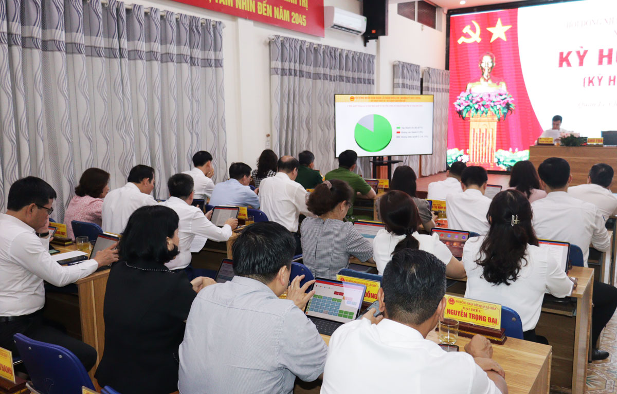 Các đại biểu HĐND quận đã tiến hành thảo luận và nhất trí biểu quyết thông qua Nghị quyết về chủ trương sắp xếp đơn vị hành chính cấp phường giai đoạn 2023-2025. Theo đó, nhập nguyên trạng diện tích tự nhiên, quy mô dân số của phường An Biên, phường Lam Sơn và phường Cát Dài để thành lập một phường mới lấy tên là phường An Biên; nhập nguyên trạng diện tích tự nhiên, quy mô dân số của phường Trần Nguyên Hãn, phường Hồ Nam và phường Dư Hàng để thành lập một phường mới lấy tên là phường Trần Nguyên Hãn; nhập nguyên trạng diện tích tự nhiên, quy mô dân số của phường Hàng Kênh, phường Trại Cau và phường Đông Hải để thành lập một phường mới lấy tên là phường Hàng Kênh; nhập nguyên trạng diện tích tự nhiên, quy mô dân số của phường An Dương, phường Niệm Nghĩa và phường Nghĩa Xá để thành lập một phường mới lấy tên là phường An Dương.