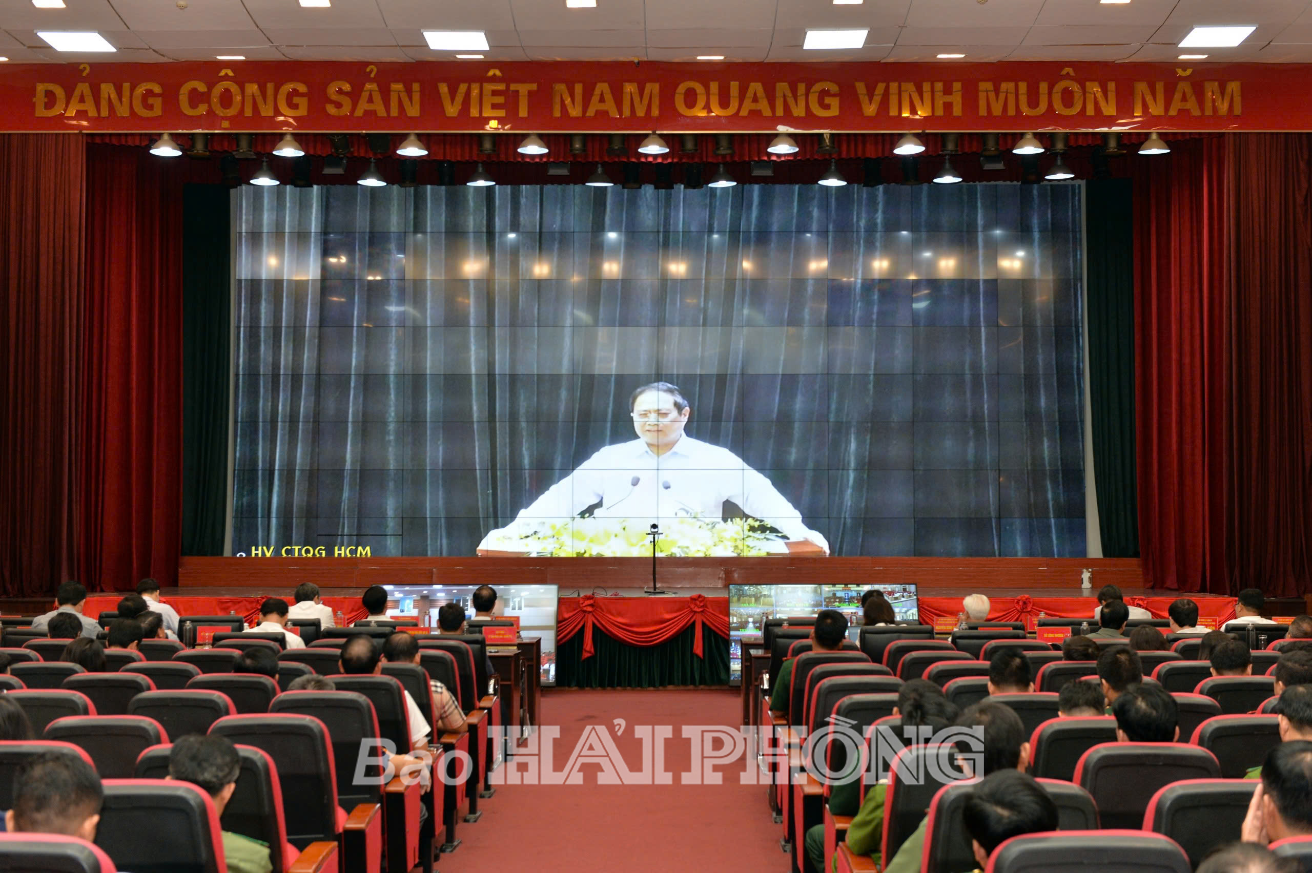 Đồng chí Lê Tiến Châu, Ủy viên Trung ương Đảng, Bí thư Thành ủy, Trưởng Đoàn đại biểu Quốc hội thành phố Hải Phòng dự hội nghị tại điểm cầu thành phố Hải Phòng. Cùng dự có các đồng chí: Đỗ Mạnh Hiến, Phó bí thư Thường trực Thành ủy; Phạm Văn Lập, Ủy viên Ban Thường vụ, Chủ tịch HĐND thành phố; Đào Trọng Đức, Ủy viên Ban Thường vụ Thành ủy, Chủ tịch Ủy ban MTTQ Việt Nam thành phố. Tham gia Hội nghị có các đồng chí Uỷ viên Ban Thường vụ Thành uỷ, Ủy viên Thành ủy; Phó trưởng Đoàn đại biểu Quốc hội Hải Phòng, Phó chủ tịch HĐND, UBND thành phố; đại diện cán bộ, công chức các ban, sở, ngành, tổ chức chính trị, xã hội… Hội nghị kết nối tới 16 điểm cầu quận, huyện trên địa bàn thành phố.