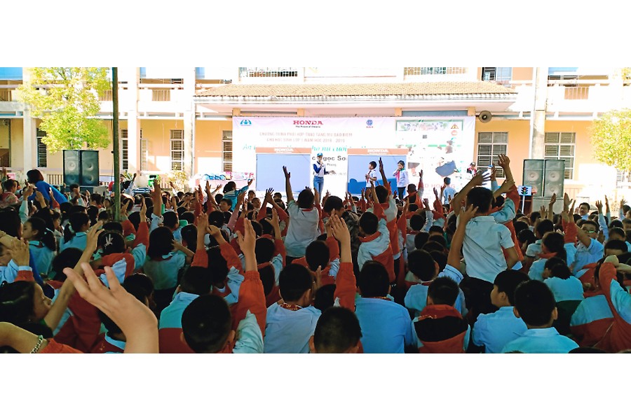 Sáng 26-11, 1.380 học sinh Trường tiểu học Ngọc Sơn (quận Kiến An) hào hứng, sôi nổi và thích thú tham gia ngày hội “An toàn giao thông cho nụ cười trẻ thơ”. Đây là trường tiểu học thứ 4 trên địa bàn thành phố được hệ thống Head Honda Hoàng Hà (ở quận Kiến An) – đại lý xe máy Honda Việt Nam tổ chức ngày hội an toàn giao thông, nhằm hưởng ứng chương trình giáo dục an toàn giao thông cho trẻ tại trường học, lứa tuổi chuẩn bị tham gia giao thông mà chưa có nhiều sự hỗ trợ của người lớn. Tại ngày hội, hướng dẫn viên lái xe an toàn của hệ thống Head Honda Hoàng Hà, Đội Cảnh sát giao thông trật tự (Công an quận Kiến An) tuyên truyền, hướng dẫn Luật Giao thông đường bộ, đội mũ bảo hiểm đúng quy cách, kỹ năng ngồi xe máy, xe đạp đúng tư thế, cách đi xe đạp và sang đường an toàn… Nội dung tuyên truyền được tuyền tải tới học sinh một cách dễ nhớ thông qua các trò chơi hấp dẫn, lý thú như “Ghép biển giao thông”, “Thử trí nhớ tài” cùng các hình ảnh sinh động, lôi cuốn. Đây là buổi tuyên truyền thiết thực, góp phần xây dựng ý thức về an toàn giao thông cho thế hệ trẻ. Tại buổi tuyên truyền, đại diện Head Honda Hoàng Hà trao tặng 80 mũ bảo hiểm đạt chuẩn tới học sinh khối 1 của Trường tiểu học Ngọc Sơn.