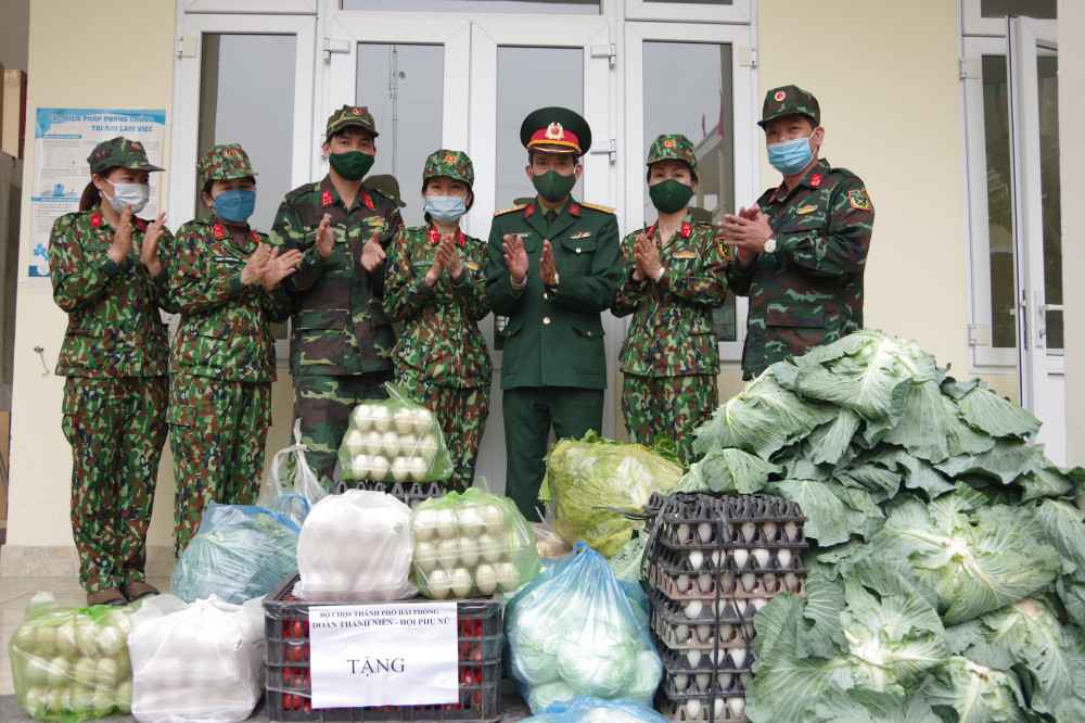 Trao tặng nông sản cải thiện chất lượng bữa ăn cho cán bộ chiến sĩ Ban CHQS quận Kiến An và các công dân trong khu cách ly