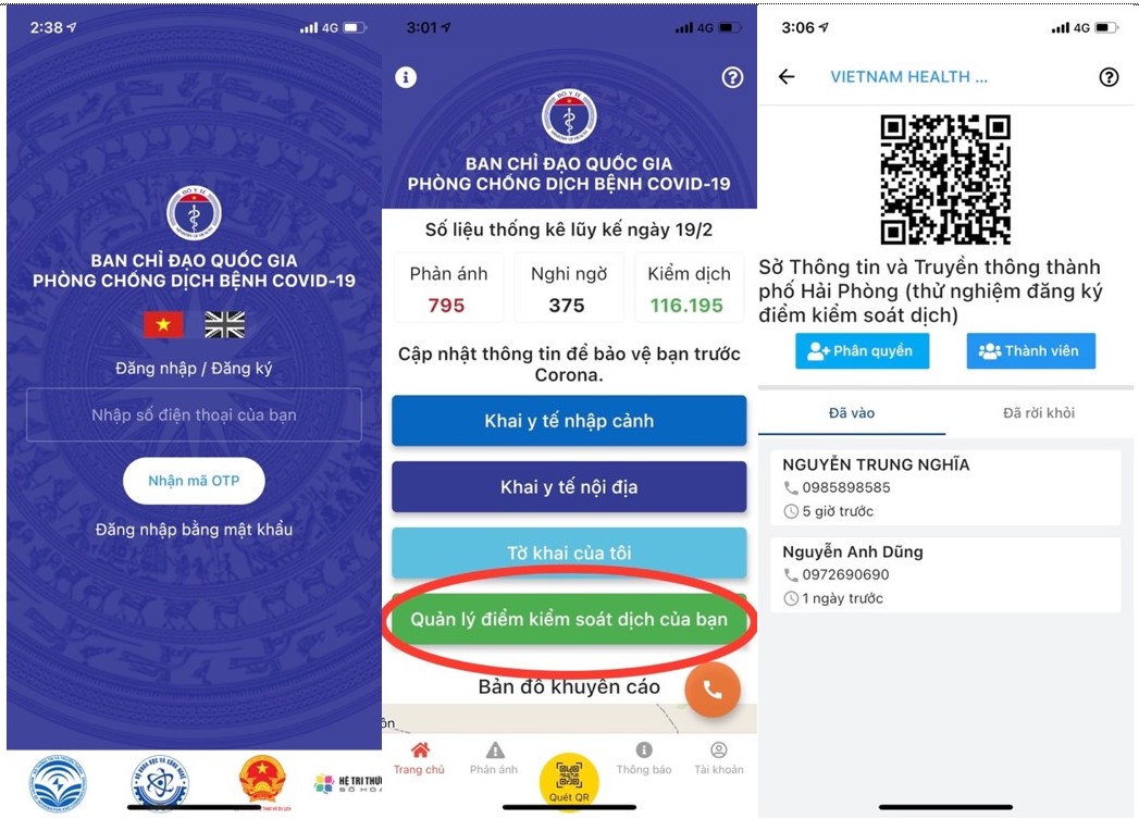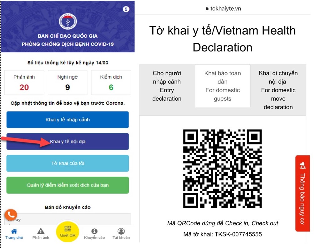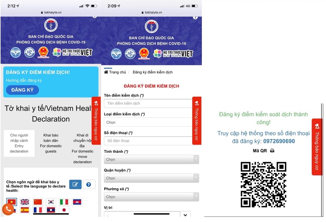 Sau khi đăng ký điểm kiểm dịch thành công, ứng dụng cung cấp một mã QR-code của riêng điểm kiểm dịch. In mã QR-code này dán ở nơi ra/vào của điểm kiểm dịch. Người dân thực hiện quét mã QR-code này để khai báo ra/vào điểm kiểm dịch.