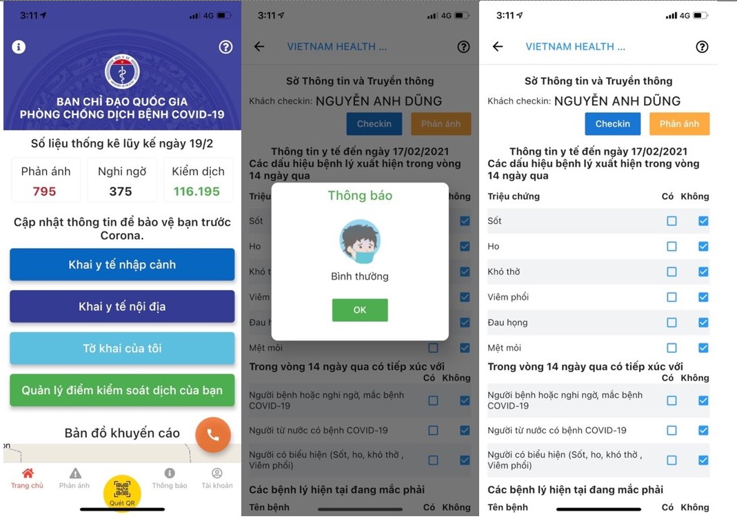 Bước 1: Mở ứng dụng Vietnam Health Declaration đã được đăng nhập bằng số điện thoại cá nhân.