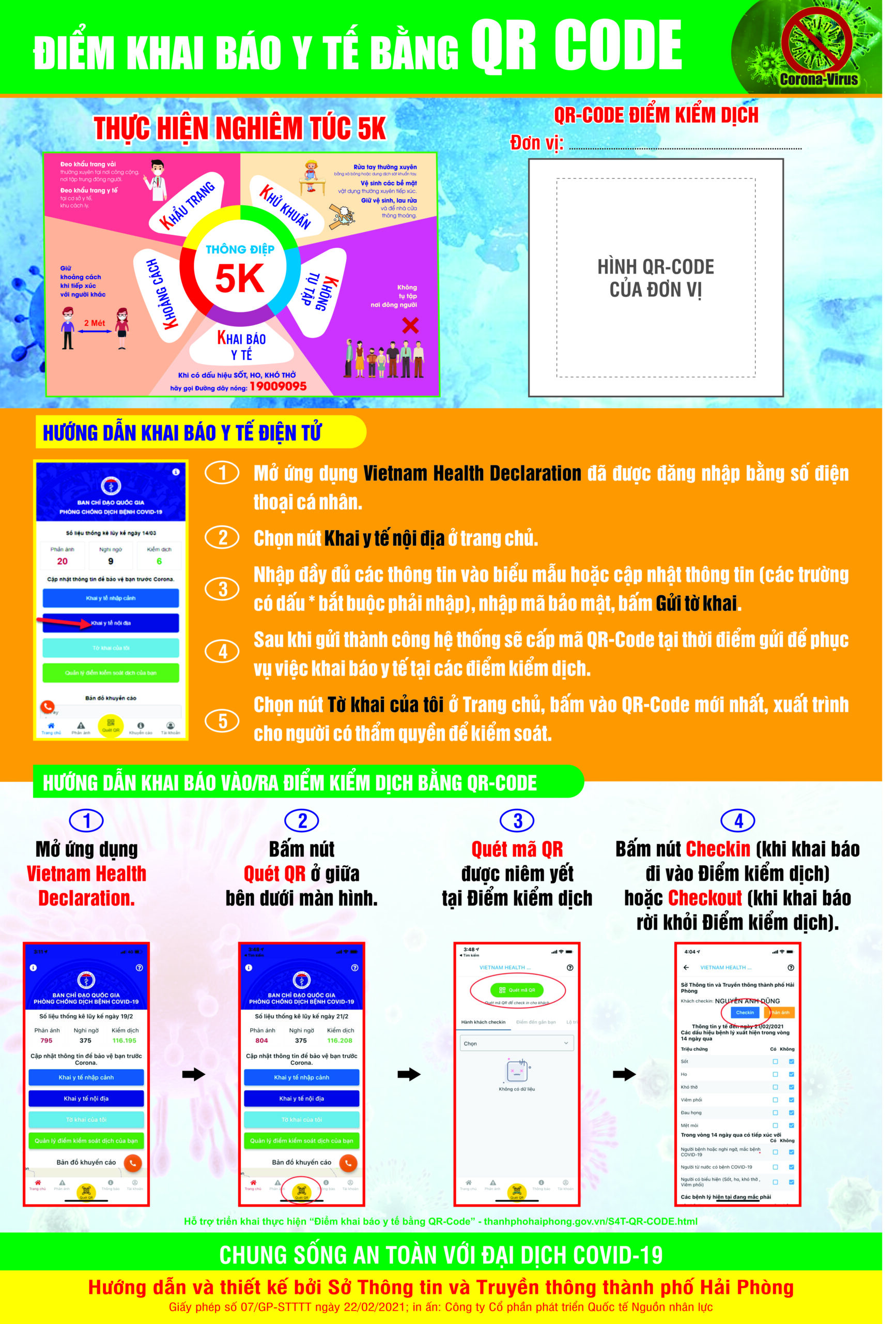 Thực hiện chỉ đạo của Ủy ban nhân dân thành phố về công tác phòng, chống dịch bệnh Covid-19, căn cứ hướng dẫn của Bộ Y tế, Bộ Thông tin và Truyền thông, Sở Thông tin và Truyền thông đã in ấn poster “Điểm khai báo y tế bằng QR-Code” để thực hiện việc khai báo y tế điện tử và kiểm soát ra/vào bằng QR-Code phục vụ công tác phòng, chống dịch bệnh Covid-19.