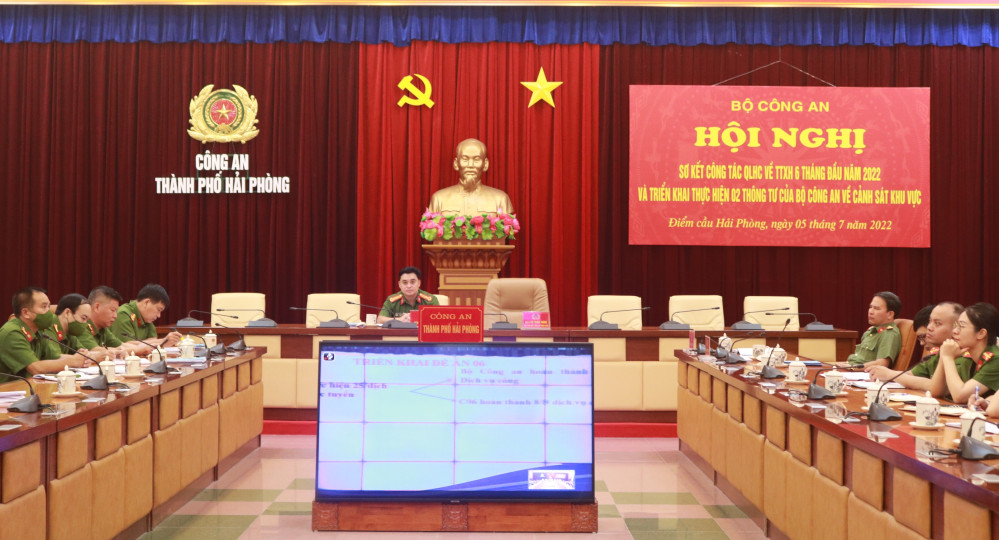 Sáng 5/7, Cục Cảnh sát QLHC về TTXH, Bộ Công an tổ chức hội nghị sơ kết công tác QLHC về TTXH 6 tháng đầu năm 2022; triển khai thực hiện 2 Thông tư của Bộ Công an về Cảnh sát khu vực. Trung tướng Tô Văn Huệ, Cục trưởng Cục Cảnh sát QLHC về TTXH dự, chủ trì hội nghị tại điểm cầu Hà Nội. Tại điểm cầu Hải Phòng, Thượng tá Trịnh Tuấn Anh, Trưởng Phòng Cảnh sát QLHC về TTXH, CATP và đại diện một số phòng chức năng CATP tham dự hội nghị.