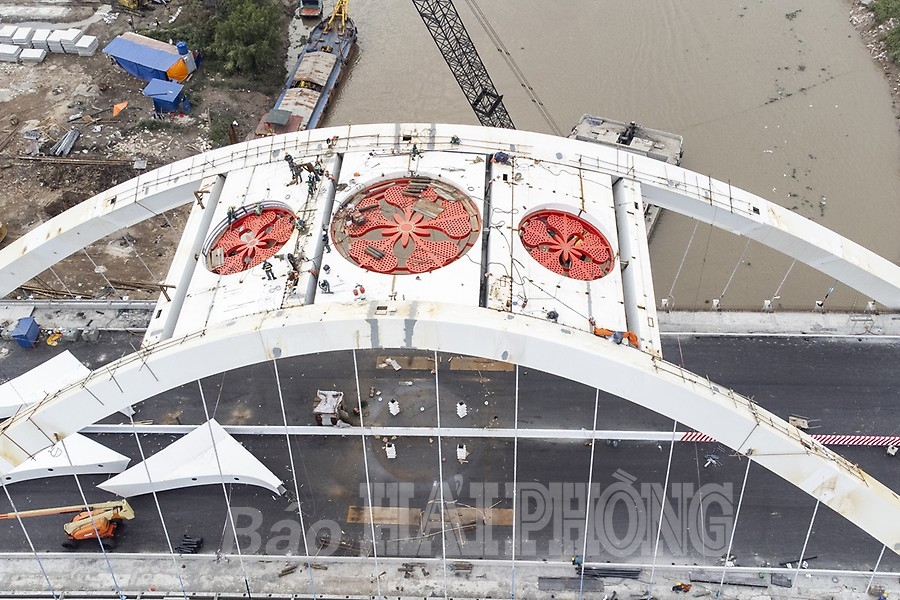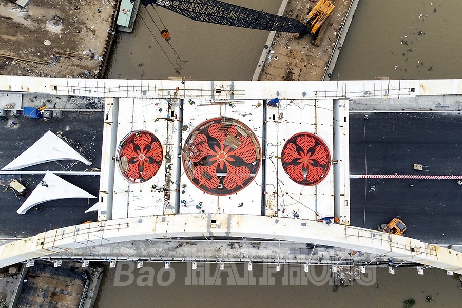 Đây là hạng mục khó trong quá trình thi công cầu Rào, vừa gia tăng độ gắn kết của hai bên vòm cầu, vừa bảo đảm mỹ thuật theo đúng thiết kế với biểu tượng của thành phố Hải Phòng, gắn với hình tượng cây cầu “cánh sóng vươn xa”.
