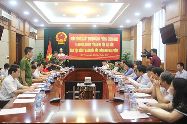 Sáng 28/9, tại Trung tâm Hội nghị thành phố, UBND thành phố làm việc với Đoàn công tác của Ủy ban Quốc gia phòng, chống AIDS và phòng, chống tệ nạn ma túy, mại dâm do Thiếu tướng Bùi Đức Hạnh, Phó Tư lệnh Bộ đội Biên phòng làm trưởng đoàn. Đồng chí Lê Khắc Nam, Phó Chủ tịch UBND thành phố, Trưởng Ban Chỉ đạo phòng, chống AIDS và phòng, chống tệ nạn ma túy, mại dâm thành phố chủ trì cuộc họp. Tham dự có lãnh đạo sở, ngành và các đơn vị liên quan.