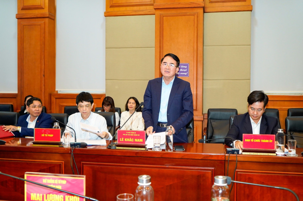 Chiều 30/11, Đoàn kiểm tra của Bộ Tư pháp do Thứ trưởng Bộ Tư pháp Mai Lương Khôi làm Trưởng đoàn làm việc với UBND thành phố về việc thực hiện Luật Luật sư và Khảo sát tình hình thực hiện Kết luận số 69-KL/TW của Ban Bí thư.