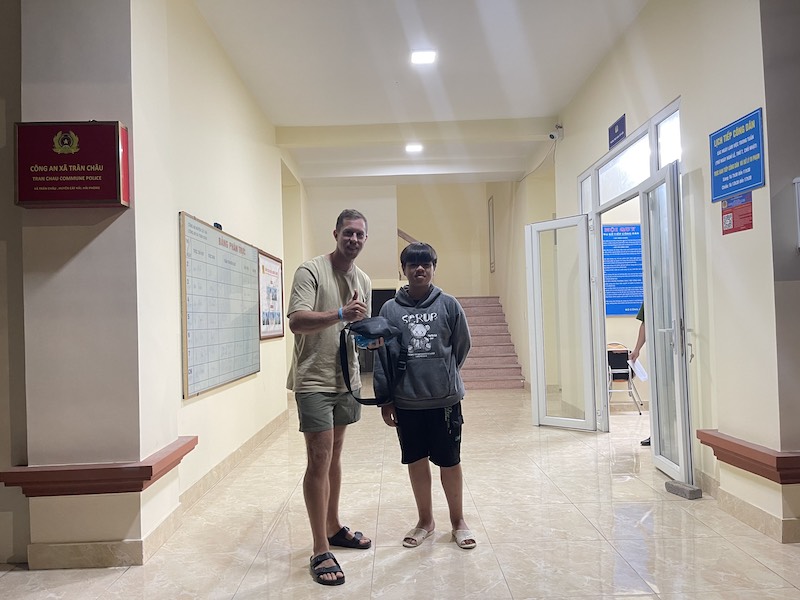 Sau khi tiếp nhận thông tin và tài sản, trong thời gian ngắn công an xã Trân Châu đã tìm được người đánh rơi tài sản là anh NETTERDON (SN 1990, quốc tịch Đức, là khách du lịch nghỉ lưu trú tại Khách sạn Đại Thuỷ, Tổ dân phố 18 thị trấn Cát Bà), trong lúc đi thăm quan tại thôn Liên Minh, xã Trân Châu đã không may đánh rơi tài sản như trên.