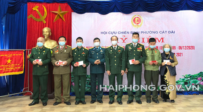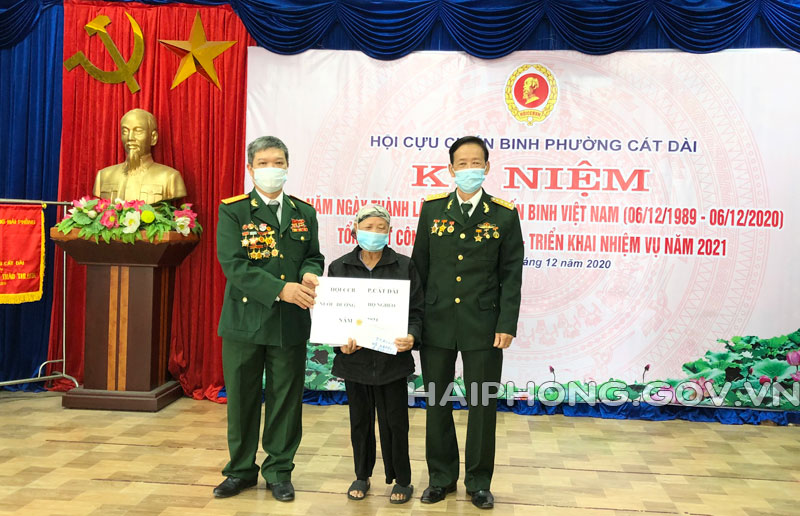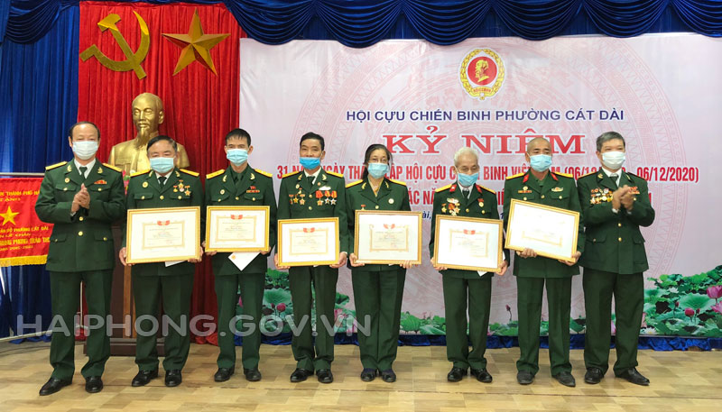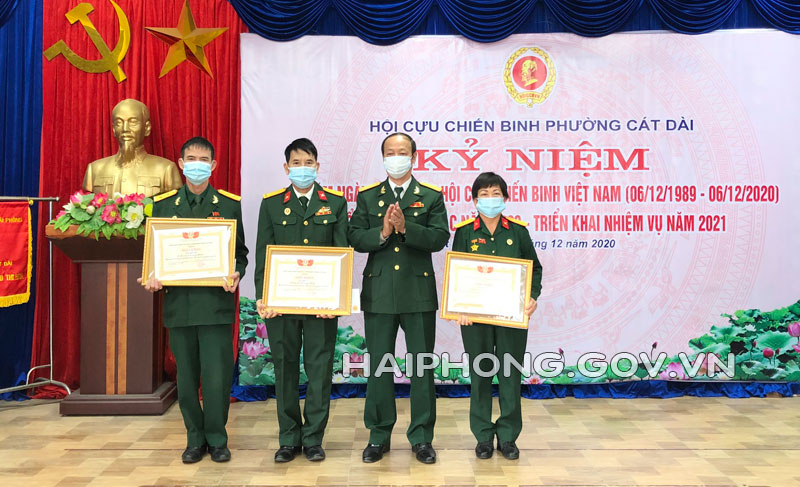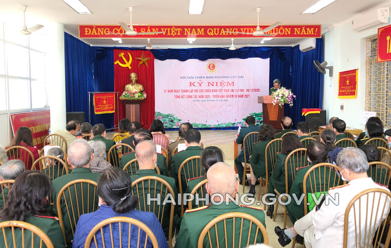 Sáng 4/12, Hội Cựu chiến binh phường Cát Dài, quận Lê Chân kỷ niệm 31 năm ngày thành lập Hội Cựu chiến binh Việt Nam (6/12/1989-6/12/2020); tổng kết công tác năm 2020 và triển khai nhiệm vụ năm 2021. Tham dự có 110 cán bộ, hội viên tiêu biểu, điển hình trong phong trào cựu chiến binh gương mẫu năm 2020.