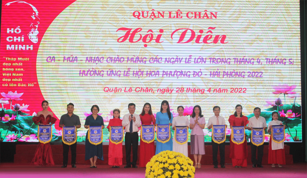 Trong không khí thi đua sôi nổi chào mừng kỷ niệm 47 năm ngày giải phóng hoàn toàn Miền Nam thống nhất đất nước (30/4/1975-30/4/2022); 68 năm Ngày chiến thắng Điện Biên Phủ (7/5/1954-7/5/2022); 67 năm Ngày giải phóng Hải Phòng (13/5/1955-13/5/2022); 132 năm Ngày sinh Chủ tịch Hồ Chí Minh (19/5/1890-19/5/2022). Tối 28/4, tại Trung tâm Văn hóa Thông tin và Thể thao quận, UBND quận Lê Chân tổ chức Hội diễn Ca-Múa-Nhạc, chào mừng kỷ niệm các ngày Lễ lớn trong 4, tháng 5; hưởng ứng Lễ hội Hoa phượng Đỏ-Hải Phòng 2022.