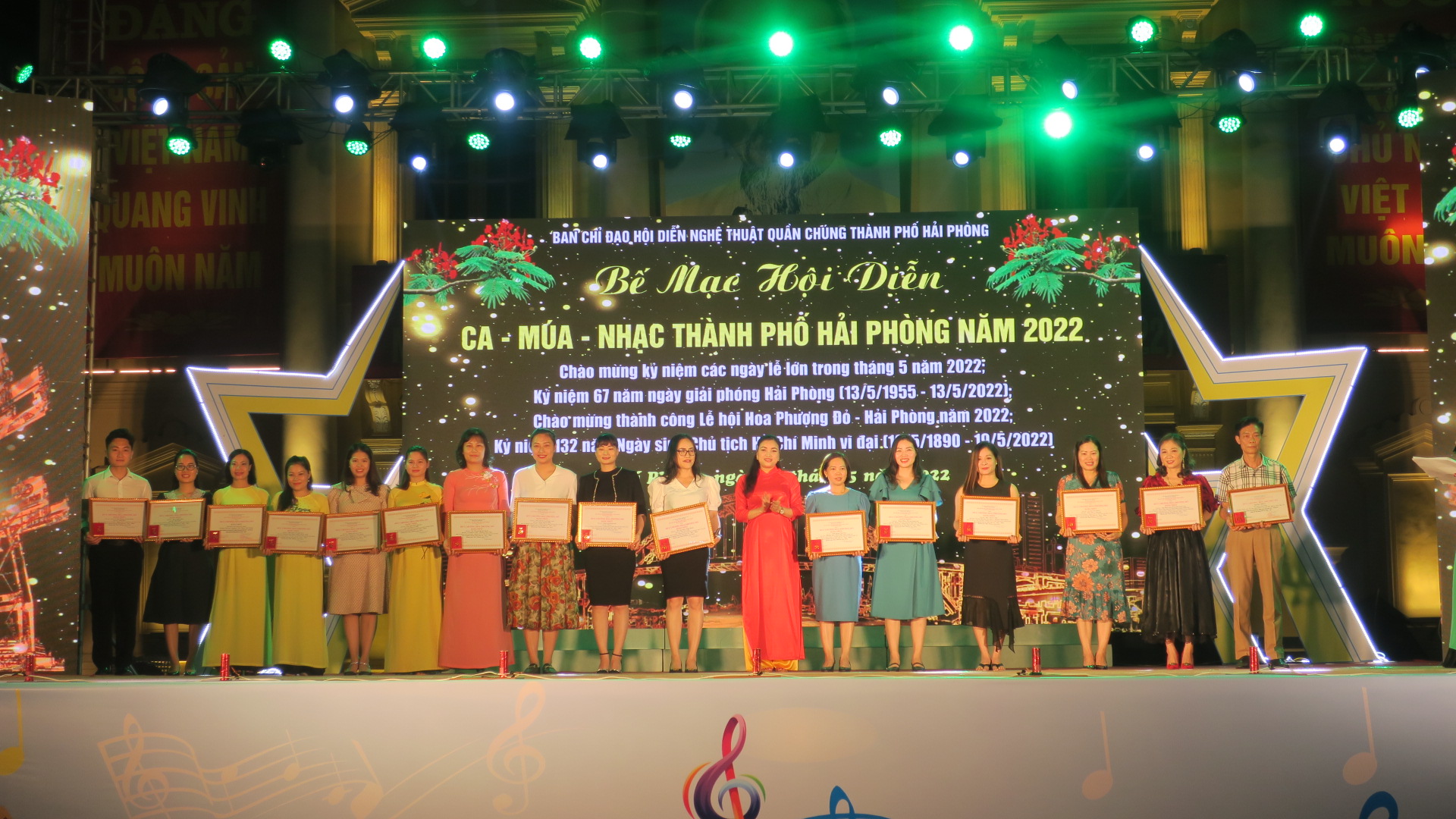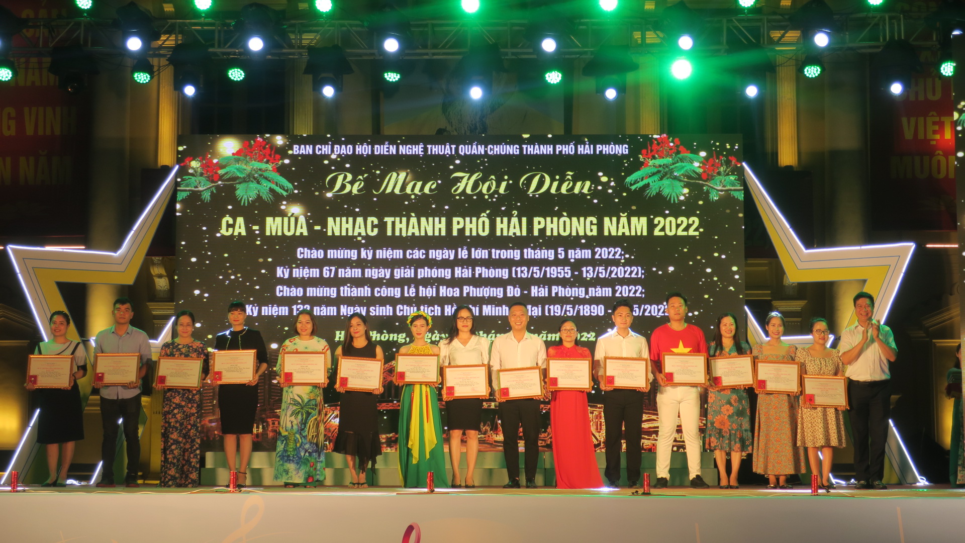 Tối 22/5, tại quảng trường Nhà hát thành phố diễn ra Lễ tổng kết và trao giải Hội diễn Ca Múa Nhạc thành phố Hải Phòng năm 2022.