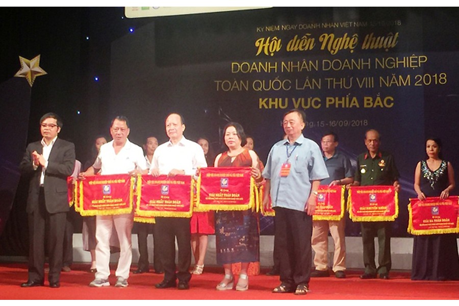 Ban tổ chức trao giải nhất toàn đoàn tặng 3 đơn vị có thành tích xuất sắc tại vòng sơ khảo “Hội diễn nghệ thuật doanh nhân, doanh nghiệp toàn quốc lần thứ 8 năm 2018 khu vực phía Bắc”.