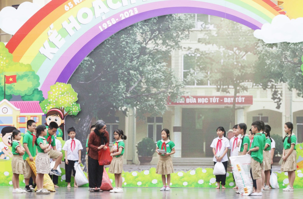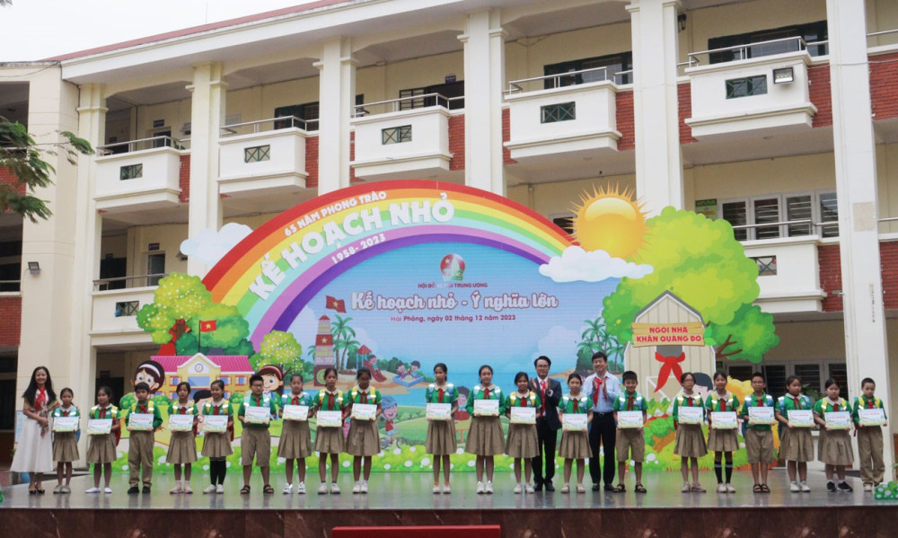 Nhân dịp này, Hội đồng Đội Trung ương trao tặng 01 công trình máy lọc nước, cột bóng rổ trị giá 40 triệu đồng và 20 suất học bổng mỗi suất trị giá 01 triệu đồng và quà tặng cho 20 em thiếu nhi có hoàn cảnh khó khăn của Trường Tiểu học Nguyễn Thượng Hiền (quận Ngô Quyền, thành phố Hải Phòng).