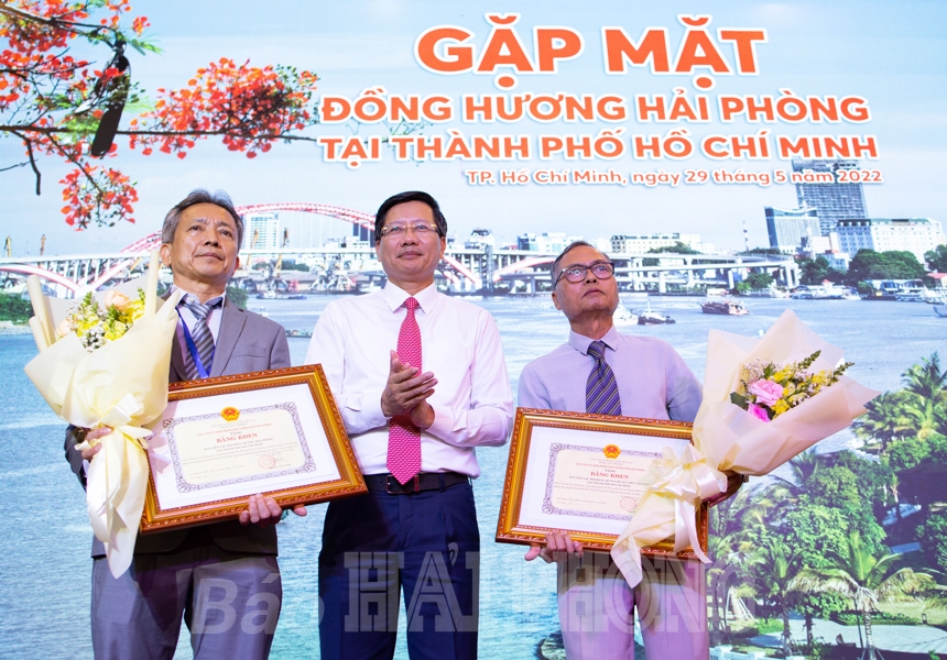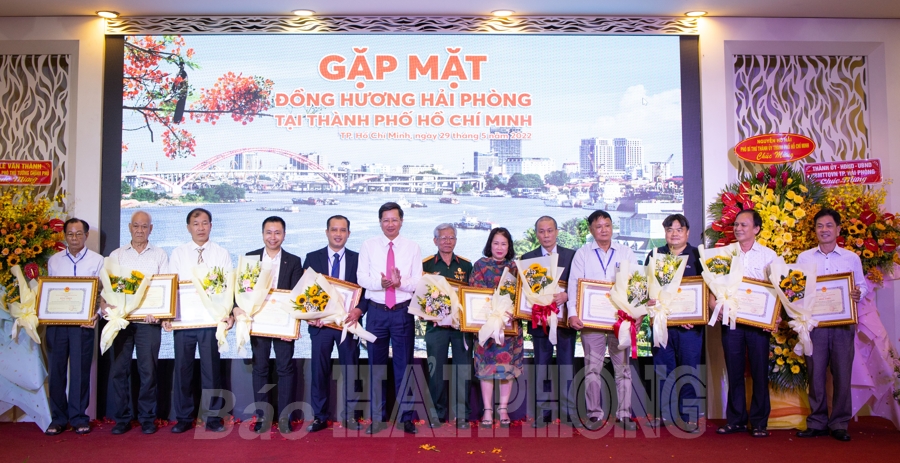 Nhân dịp này, 2 tập thể và 23 cá nhân thuộc Hội đồng hương Hải Phòng tại thành phố Hồ Chí Minh được nhận bằng khen của Chủ tịch UBND thành phố Hải Phòng về thành tích chung tay cùng thành phố hỗ trợ bà con gặp khó khăn tại thành phố Hồ Chí Minh trong đợt dịch vừa qua. Cũng trong buổi họp mặt, Hội đồng hương Hải Phòng tại thành phố Hồ Chí Minh chúc thọ hội viên cao tuổi và khen thưởng học sinh, sinh viên đạt thành tích cao trong học tập, các đơn vị, doanh nghiệp có nhiều đóng góp trong công tác Hội./.