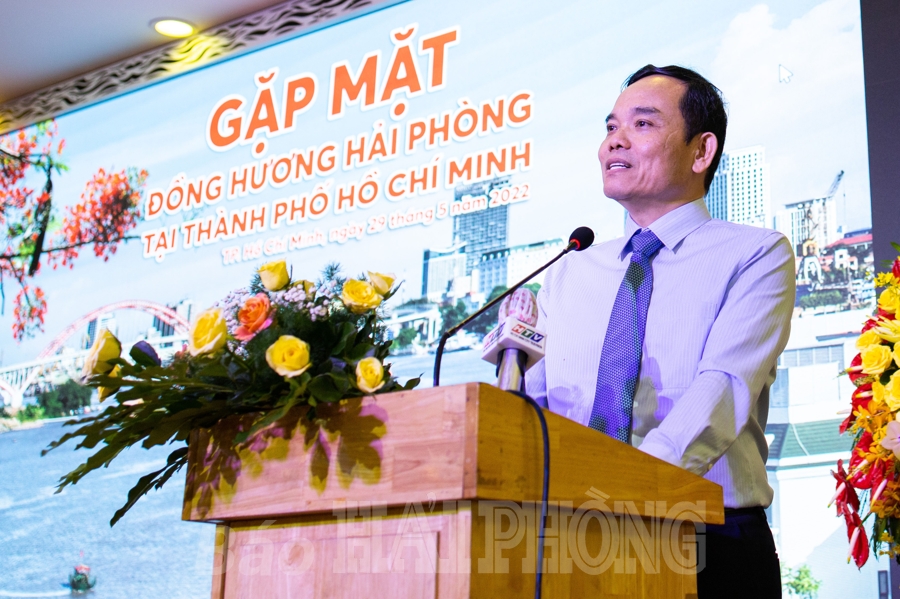 Đồng chí Bí thư Thành ủy nhấn mạnh, hiện Đảng bộ, chính quyền và nhân dân thành phố Cảng đang nỗ lực thực hiện các mục tiêu đề ra trong Nghị quyết số 45 của Bộ Chính trị về xây dựng thành phố Hải Phòng đến năm 2030, tầm nhìn đến năm 2045 và Nghị quyết Đại hội 16 Đảng bộ thành phố. Để đạt được những mục tiêu cao đó, thành phố đang tận dụng mọi thời cơ, huy động các nguồn lực, hành động quyết liệt để tập trung vào 3 trụ cột phát triển kinh tế thành phố, gồm: công nghiệp công nghệ cao, cảng biển-logistics, thương mại-du lịch cùng với đẩy mạnh chuyển đổi số. Đồng chí mong muốn Ban liên lạc Hội đồng hương Hải Phòng tại thành phố Hồ Chí Minh tích cực quy tụ, là cầu nối bà con xa quê tiếp tục đoàn kết, phát huy truyền thống “Trung dũng-Quyết thắng”, thương yêu, đùm bọc, giúp đỡ nhau trong quá trình sinh sống, làm việc tại thành phố mang tên Bác, cũng như thường xuyên nắm bắt thông tin, chủ trương của thành phố Cảng để chung tay, góp sức về vật chất, tinh thần, nhất là đóng góp nhiều ý kiến quý báu với Đảng bộ, chính quyền, quân và dân thành phố trong thực hiện thắng lợi các nhiệm vụ.