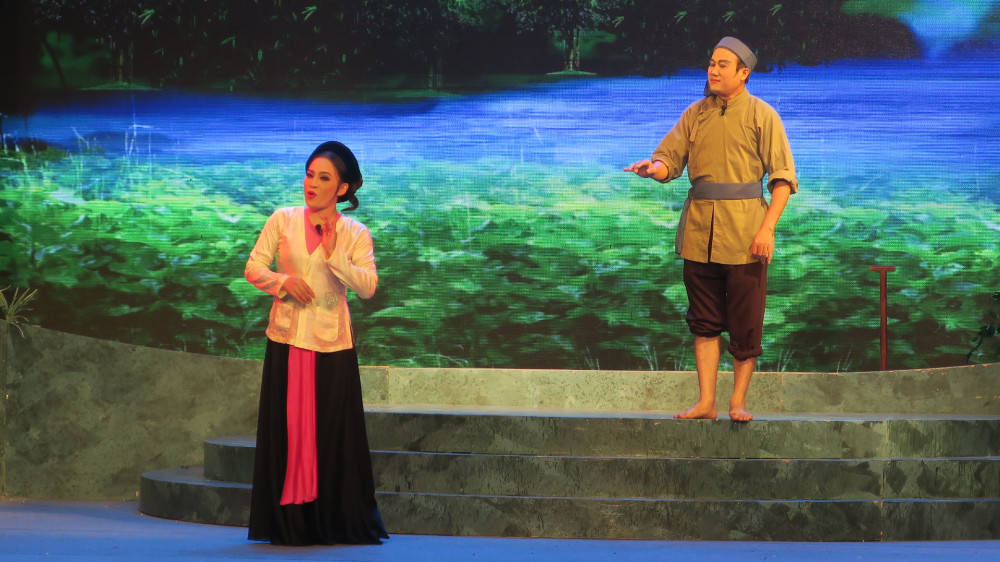 Mang đặc trưng của nghệ thuật Chèo truyền thống là Kỳ hóa, huyền thoại hóa. Vở Chèo “Chuyện tình bên sông Đa Độ” là một câu chuyện kể về mối tình của một chành trai lái đò nghèo và nàng tiểu thư con của Phú ông giàu có nhất làng. Bởi quan niệm cổ hủ môn đăng hộ đối, chênh lệch về giai tầng phong kiến giữa giàu và nghèo, bởi lòng tham, bởi tính gia trưởng của ông Phú Hộ khiến đôi trẻ đã yêu thương nhau phải chịu bao đắng cay, tủi nhục. Phú ông đã ra điều kiện cho chàng trai lấp được sông Đa Độ mới đồng ý gả con gái của ông, việc khó vậy sao làm được? Nhưng chàng trai vẫn miệt mài ngày đêm đào núi lấp sông vì người mình yêu thương, đến hẹn vẫn như muối bỏ bể, cái đập, con đường chẳng thể nào có được. Chàng trai đau buồn bỏ đi để cho người thương không còn vương vấn nữa, chấp nhận cuộc hôn nhân do cha mình sắp đặt và muốn nàng được sống trong cảnh giàu sang.
