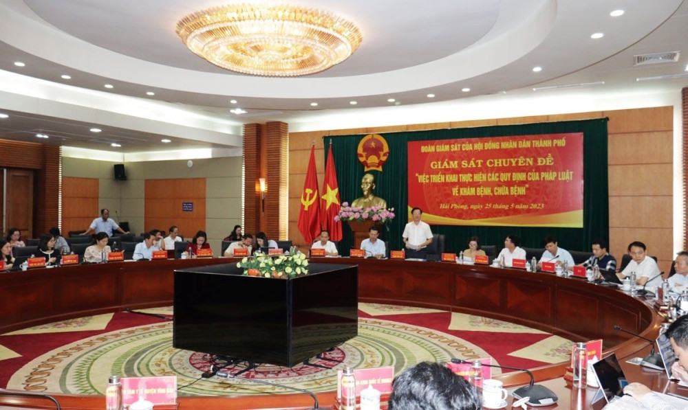 Chủ tịch HĐND thành phố cũng chia sẻ với những khó khăn, tồn tại, vướng mắc đối với ngành y tế về công tác quản lý, cơ sở hạ tầng chưa đáp ứng yêu cầu nhất là hệ thống y tế cấp xã, phường, quận, huyện. Có hiện tượng cán bộ, nhân viên y tế xin thôi việc với số lượng năm sau cao hơn năm trước. Chủ tịch HĐND thành phố đề nghị UBND thành phố chỉ đạo các sở, ngành liên quan nghiên cứu, xây dựng đề án, trong đó có cơ chế, giải pháp đồng bộ về thu hút nguồn nhân lực, đầu tư cơ sở hạ tầng, trang thiết bị, máy móc để xây dựng hệ thống y tế thành phố phát triển đồng bộ, bền vững trong thời gian tới, trở thành Trung tâm y tế vùng Duyên hải Bắc bộ như mục tiêu của Nghị quyết số 45 của Bộ Chính trị. Đồng thời đề nghị các sở, ngành tiếp thu, bổ sung, hoàn thiện báo cáo gửi Tổ thư ký, giúp việc hoàn thiện dự thảo báo cáo giám sát.