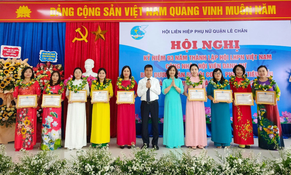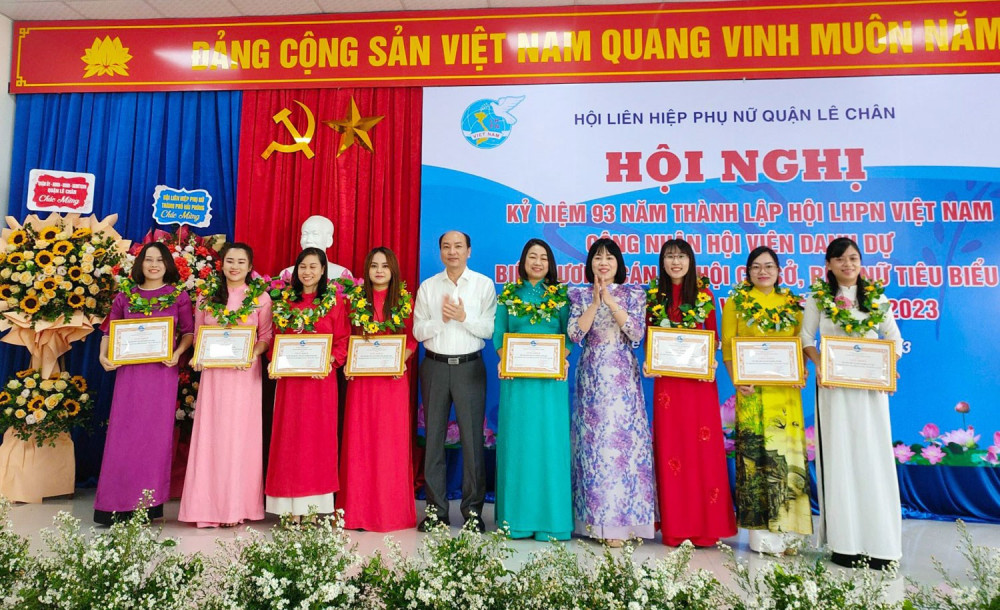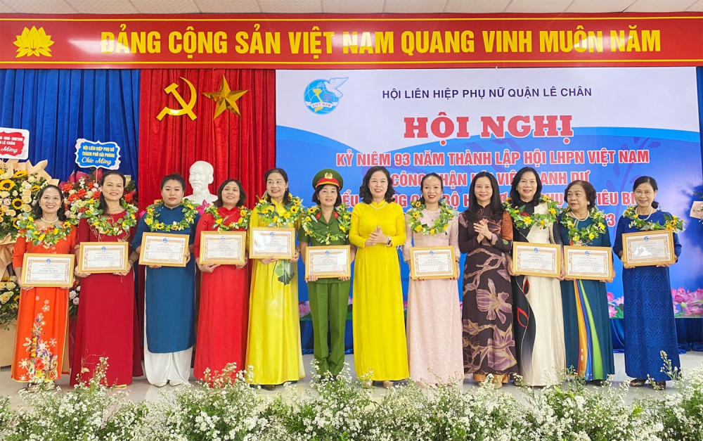 Sáng 20/10, Hội LHPN quận Lê Chân tổ chức kỷ niệm 93 năm ngày thành lập Hội LHPN Việt Nam (20/10/1930-20/10/2023) và Ngày phụ nữ Việt Nam 20/10; công nhận hội viên danh dự và biểu dương cán bộ hội cơ sở, phụ nữ tiêu biểu và mô hình “Dân vận khéo” năm 2023.
