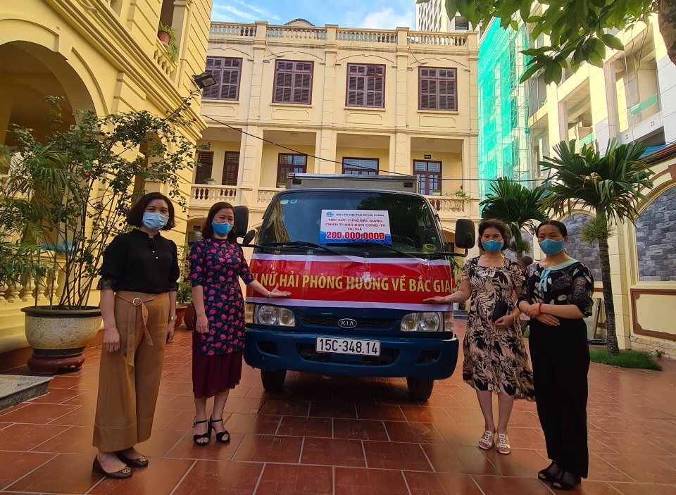 Tôn vinh, động viên, trao tặng quà 100 nữ y bác sĩ, cán bộ Hội Phụ nữ các cấp trên địa bàn thành phố có thành tích xuất sắc trong công tác phòng chống dịch bệnh COVID-19; thăm và tặng quà động viên các đơn vị của ngành Y tế, các gia đình cán bộ, y bác sĩ trong đoàn công tác tình nguyện tại Bắc Giang, Bắc Ninh; hỗ trợ nhu yếu phẩm cho bệnh viện Trẻ em Hải Phòng, Bệnh viện Phụ sản Hải Phòng; các lực lượng chống dịch, các chốt trực, người dân các khu vực bị phong toả, giãn cách xã hội theo Chỉ thị 15 và 16/CT-TTg của Thủ tướng Chính phủ tại các xã/phường thuộc quận Lê Chân, huyện Thuỷ Nguyên, huyện Tiên Lãng, huyện Vĩnh Bảo, quận Ngô Quyền, tỉnh Bắc Ninh, Bắc Giang… Cụ thể trao tặng: 400.500 khẩu trang, 2.000 chai nước rửa tay khô sát khuẩn, 1.850 lít nước sát khuẩn, 254kg Cloramin B, 2000 chai nước rửa tay, 23 máy đo thân nhiệt, 357 chai nước lau nhà, 20.000 chai nước lọc, 600 chai nước khoáng, 800 quả trứng gà, 10.000 kg gạo, 632 thùng mỳ tôm, 1000 chai dầu ăn, 125 gói mì chính, 1000 suất ăn đêm cho các chốt trực; 14.400 lon cà phê, 1.000 thùng sữa tươi, 520 hộp sữa bột, 624 thùng bánh Kinh đô, 100 kg giò, 500 bánh chưng, 200 chai mắm, 1750 suất ăn, 9.462 suất ăn, 600 triệu đồng tiền mặt… trị giá 15 tỷ đồng.