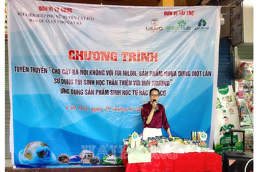 Tại chương trình, Hội LHPN huyện tuyên truyền về tác hại của rác thải nhựa, túi nilon thông thường đối với sức khỏe con người và môi trường; kêu gọi toàn thể cán bộ, hội viên phụ nữ, tiểu thương, nhân dân và du khách từng bước thay đổi thói quen sử dụng túi nilon, các sản phẩm nhựa dùng một lần, hướng tới sử dụng các sản phẩm sinh học thân thiện với môi trường, góp phần xây dựng thương hiệu “Cát Bà xanh”.