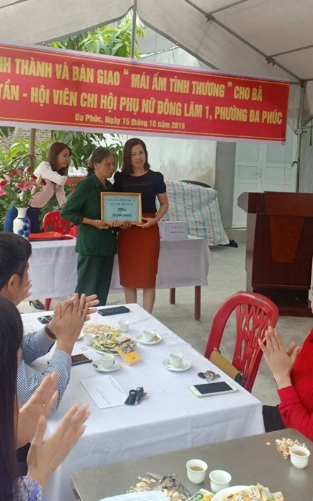 Thực hiện kế hoạch phát động đợt thi đua đặc biệt chào mừng kỷ niệm 89 năm ngày thành lập Hội LHPN Việt Nam 20-10, triển khai nhiệm vụ năm 2019 về khảo sát và vận động ủng hộ xây dựng “Mái ấm tình thương” cho phụ nữ nghèo, phụ nữ đơn thân, khuyết tật, phụ nữ có hoàn cảnh đặc biệt khó khăn về nhà ở, trong dịp này, Hội LHPN quận tổ chức khánh thành và bàn giao nhà “Mái ấm tình thương” cho bà Phạm Thị Tần – hội viên Chi hội Phụ nữ Đông Lãm 1, phường Đa Phúc.