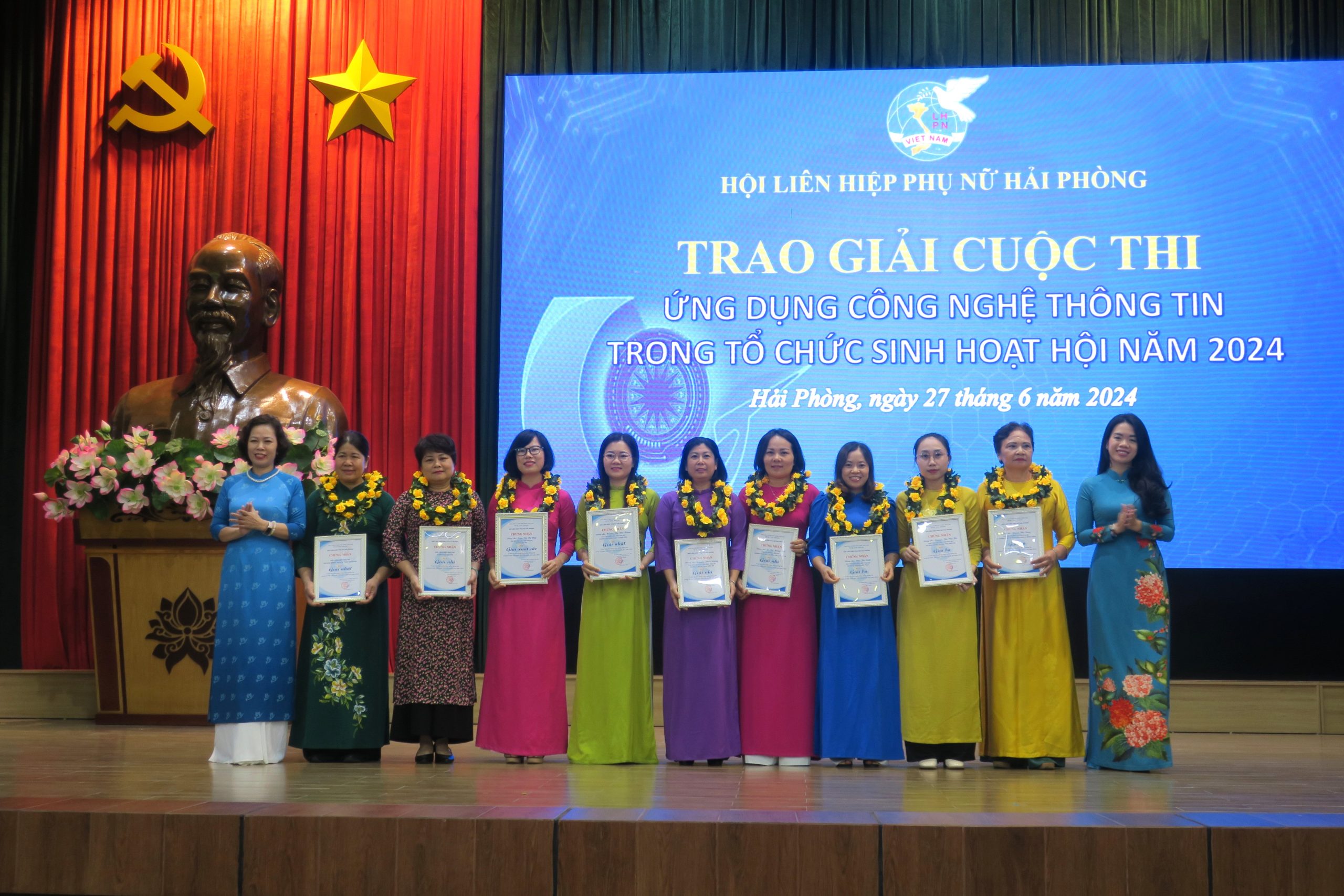 Nhân dịp này, UBND thành phố tặng Bằng khen cho 6 tập thể và 6 cá nhân có thành tích trong Phong trào thi đua “Xây dựng người Phụ nữ Việt Nam thời đại mới” giai đoạn 2021-2023. Hội LHPN thành phố tặng Bằng khen cho 2 tập thể và 6 cá nhân có đóng góp trong Phong trào phụ nữ thành phố giai đoạn 2021-2023. Hội LHPN thành phố trao 1 giải Xuất sắc, 2 giải Nhất, 3 giải Nhì, 3 giải Ba cho các tập thể, cá nhân tham gia Cuộc thi ứng dụng công nghệ thông tin trong tổ chức sinh hoạt hội năm 2024.